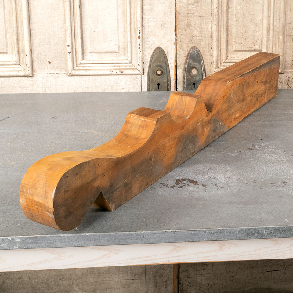 Architectural salvage decorative carved solid wood exterior rafter tail bracket trim piece. Sold individually. Priced at $125/each. Condition may vary. 41 3/4" x 5 1/2" x 2 3/4" each