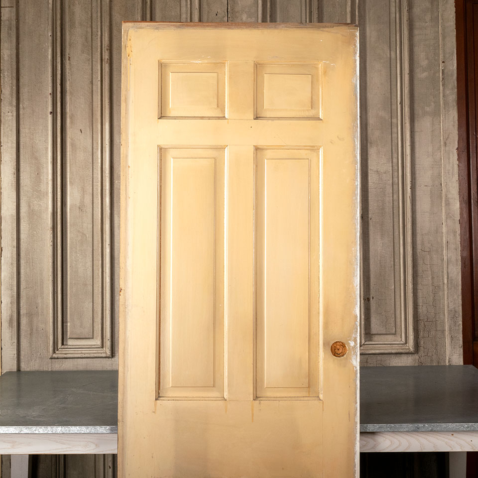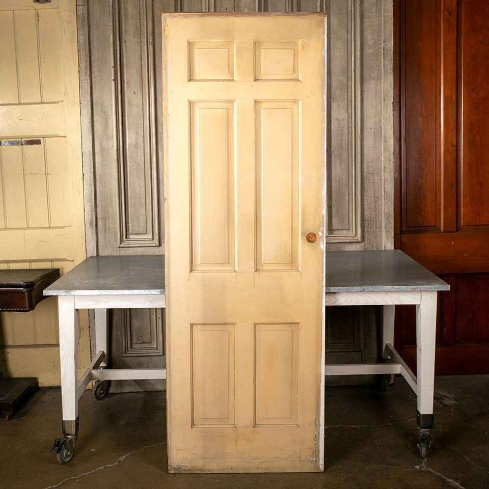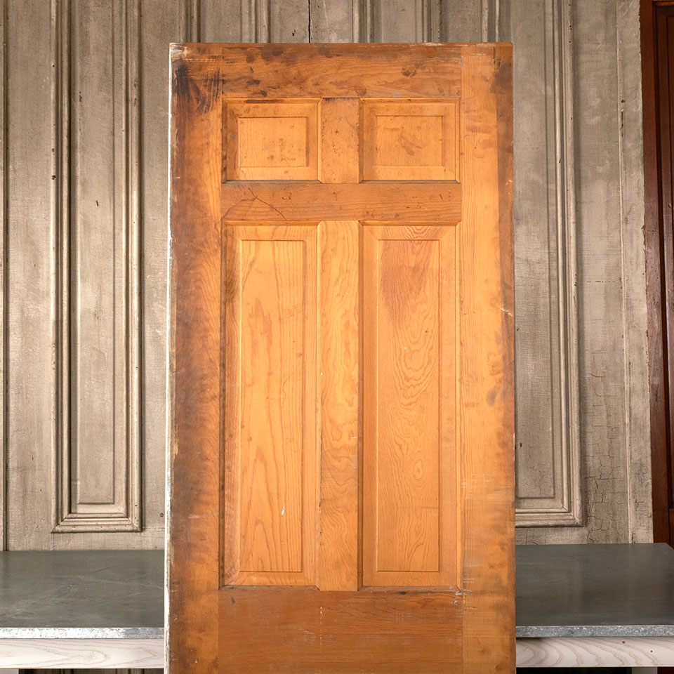 Antique architectural salvage 6 panel interior wood pocket door measuring approximately 28" wide x 80 1/2" tall x 1 3/8" thick.