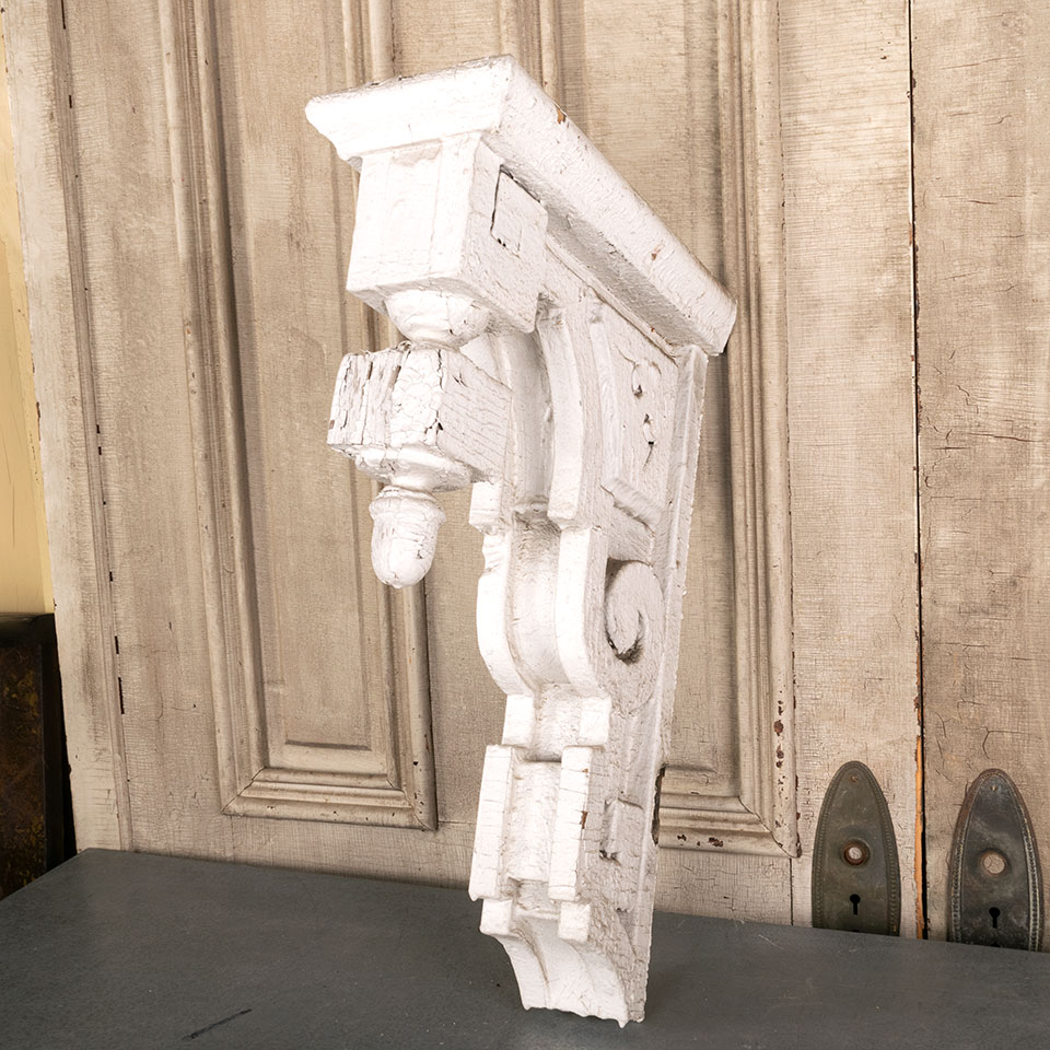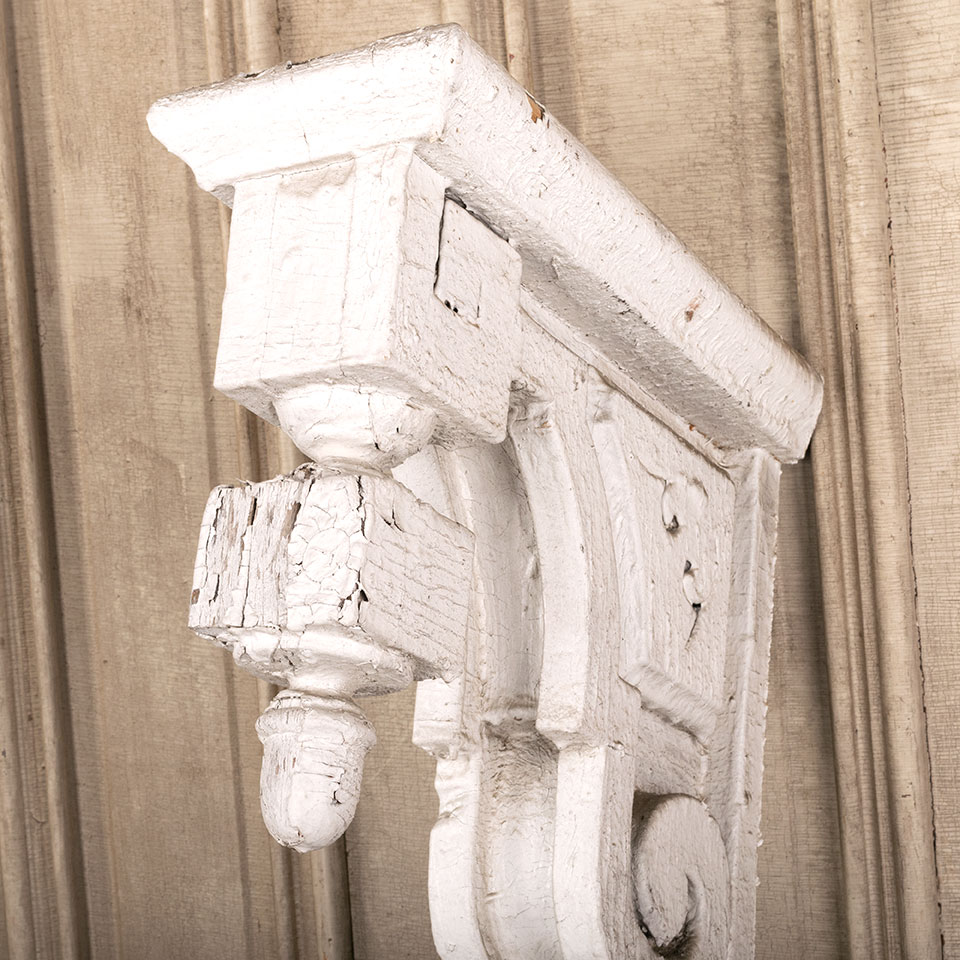 Vintage antique architectural salvage painted wood exterior Victorian corbel bracket measuring 6 3/4" wide x 24 1/8" tall x 16 3/4" front to back. See photos to evaluate condition.