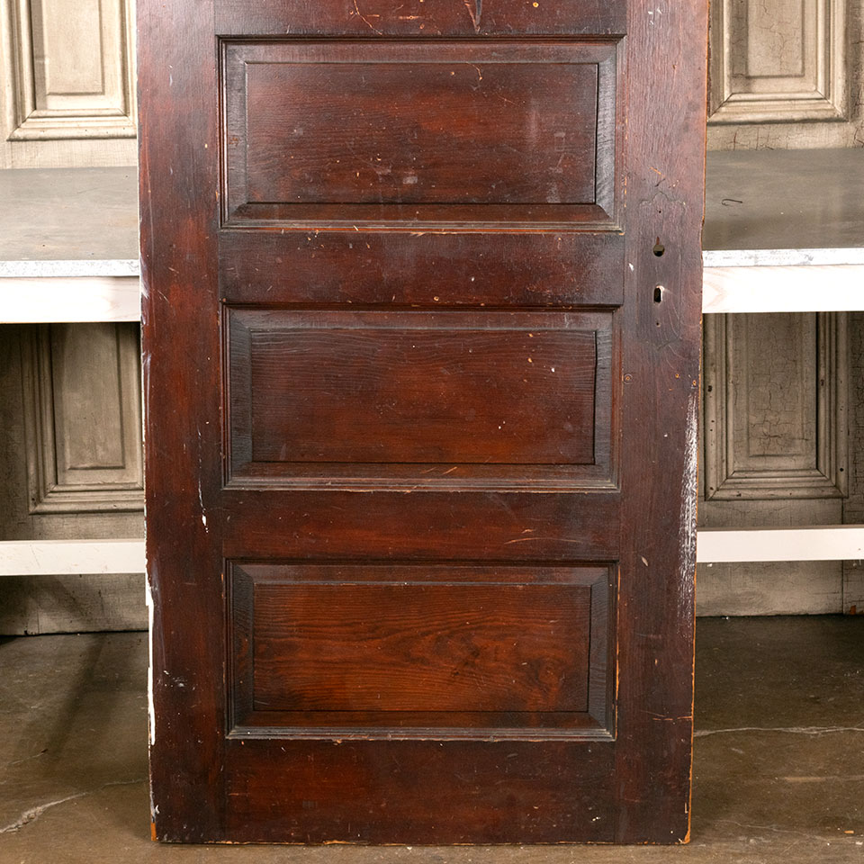 Antique architectural salvage horizontal 5 panel interior pine wood door measuring approximately 30 1/8" wide x 76 3/4" tall x 1 3/8" thick.