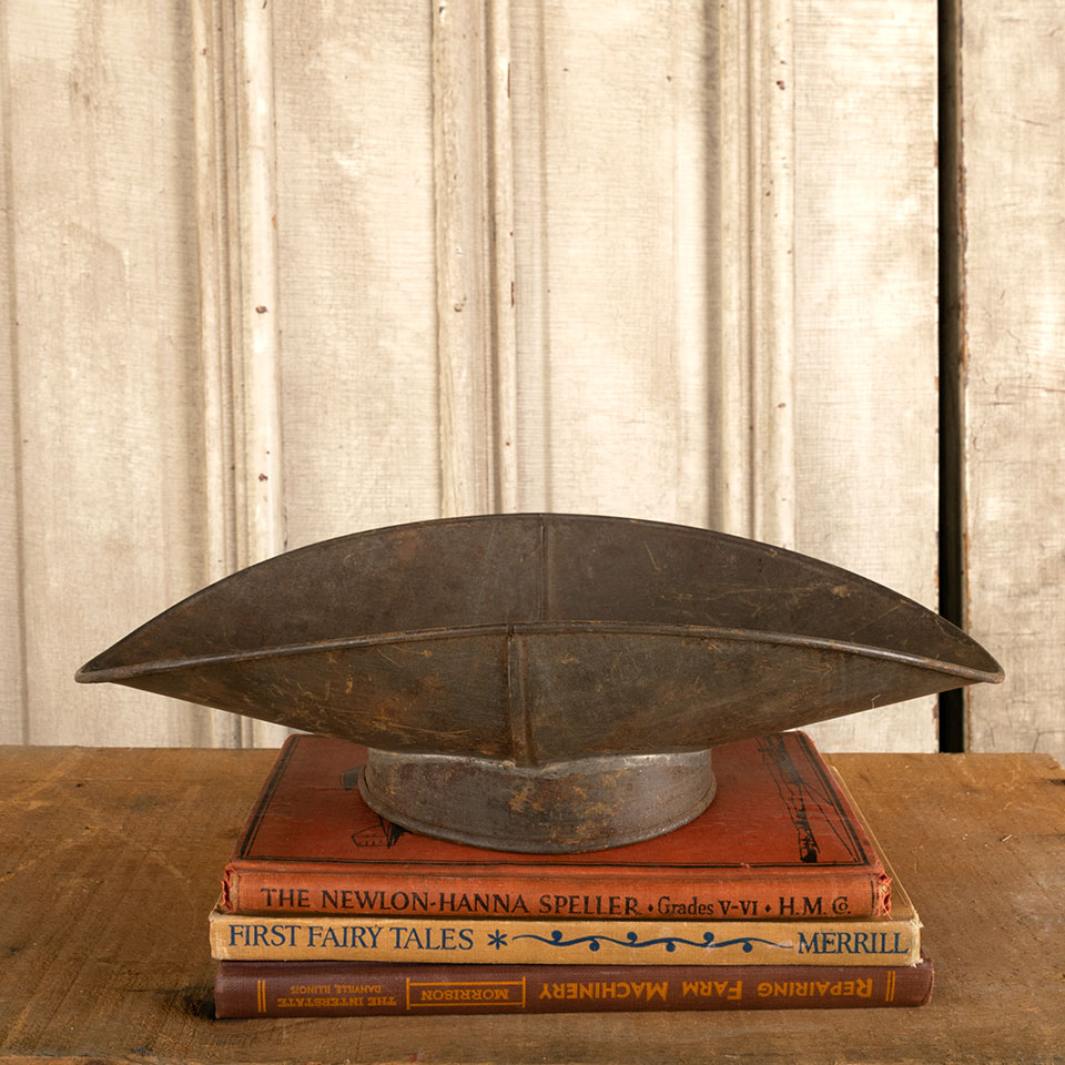 Antique metal scale bowl measuring approx. 12 1/2" wide x 3 1/4" tall x 7 1/4" front to back. See photos to evaluate condition.