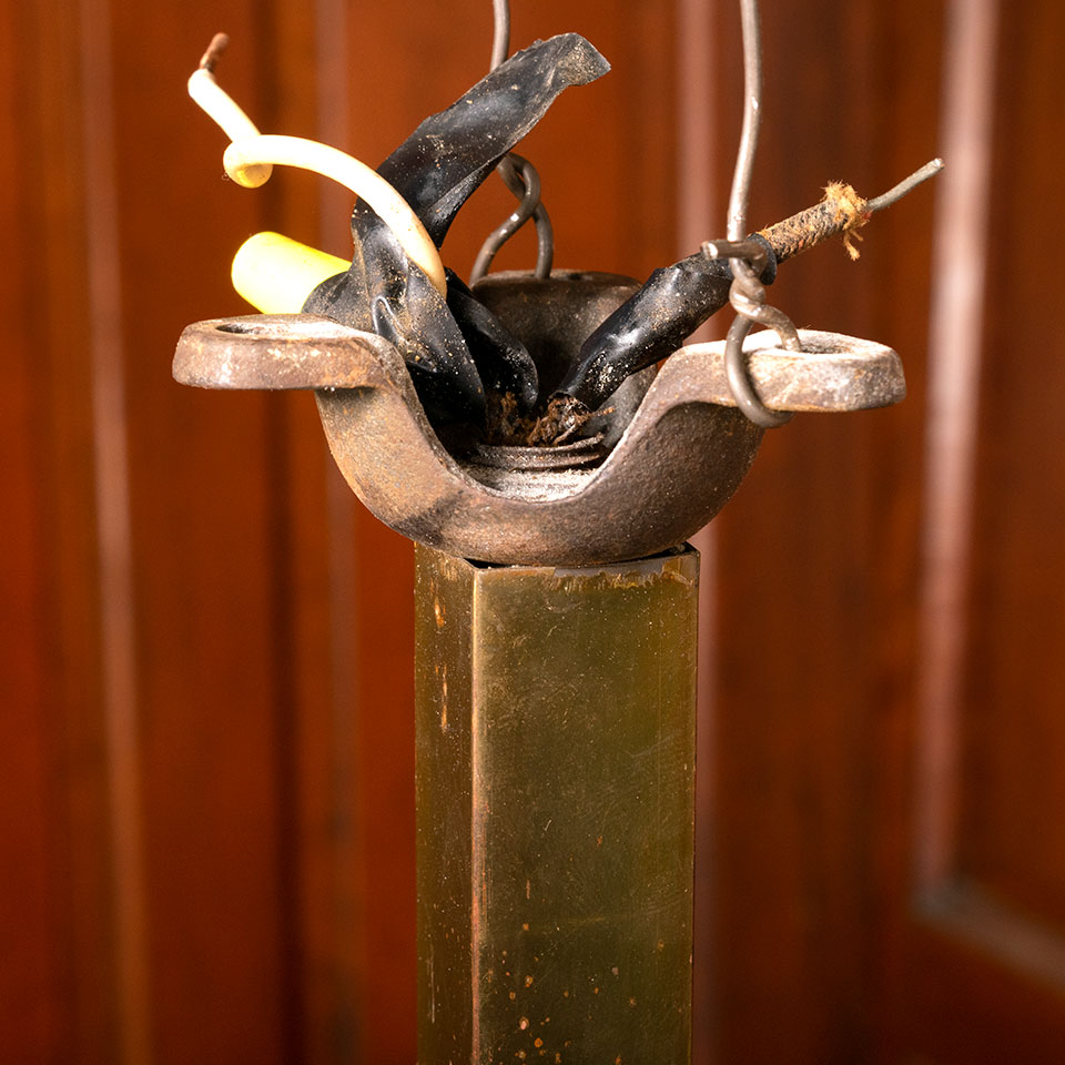 Antique architectural salvage 4 light chandelier measuring approx. 27" in diameter x 48" tall. This fixture will need to be rewired.