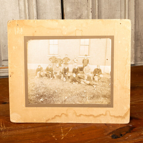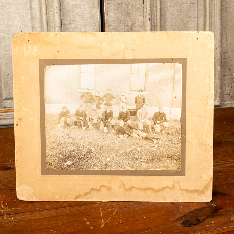 Vintage school football team original photograph measuring approx. 9 1/2" wide x 7 1/2" tall on a matte measuring approx. 14" wide x 12" tall. The matte is marked Loder's Studio PITTSFIELD, MAINE. See photos to evaluate condition.