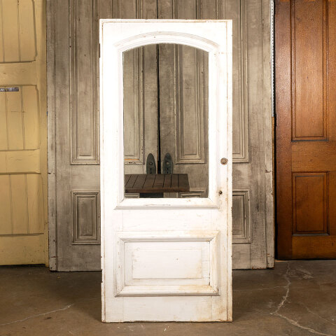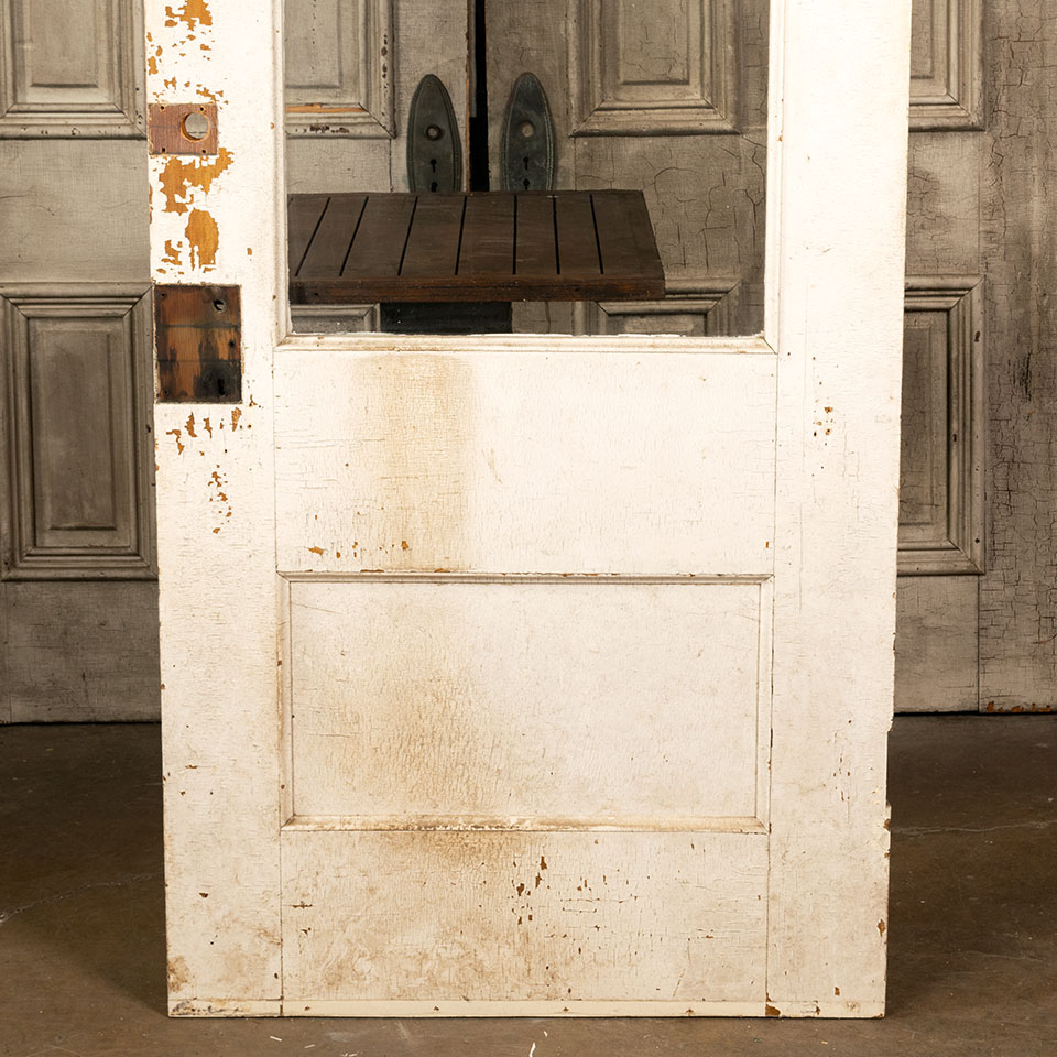 Antique architectural salvage Victorian half lite painted wood entry door with wavy glass measuring approx. 33" wide x 75 7/8" tall x 1 3/8" thick. See photos to evaluate condition.