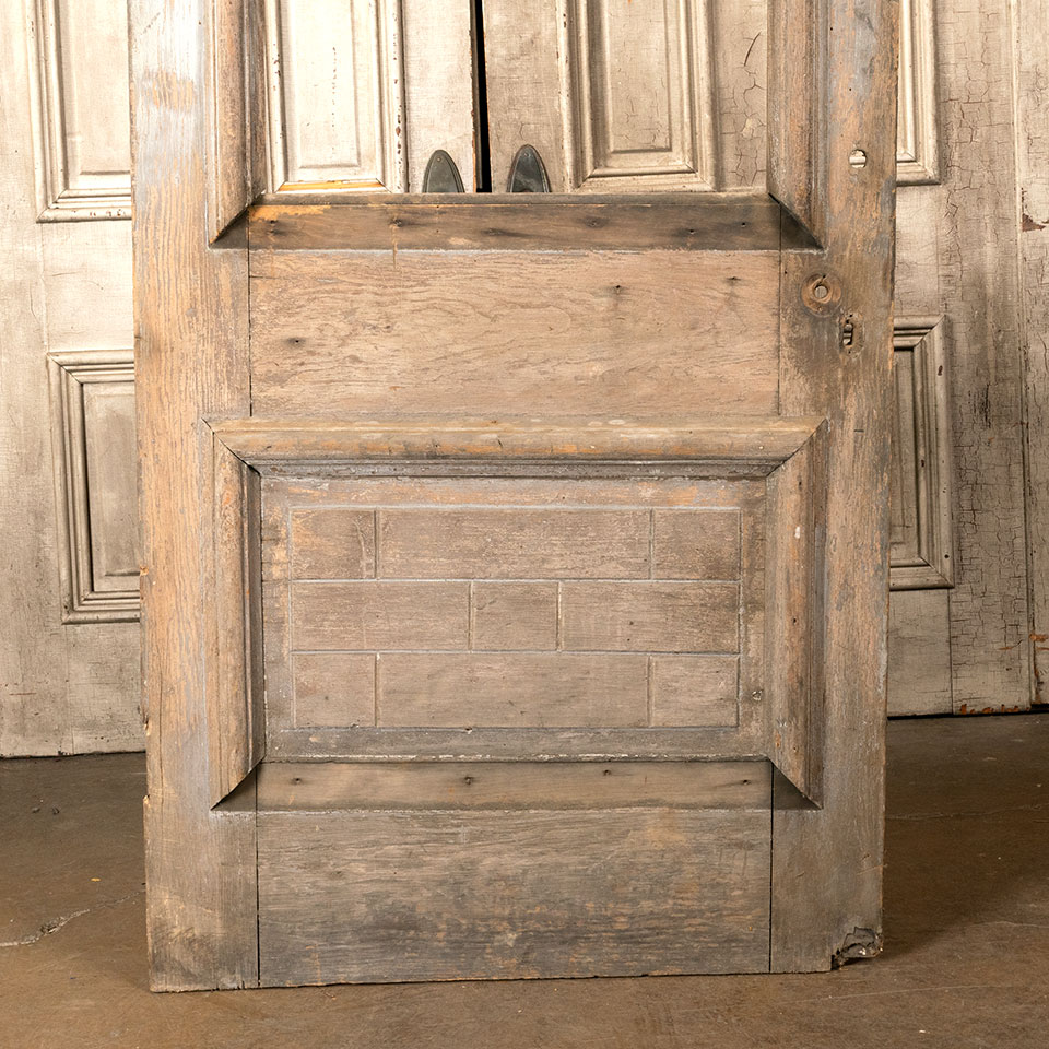 Antique architectural salvage Victorian half lite wood entry door measuring approx. 34 3/4" wide x 97 5/8" tall x 1 1/4" thick. There's no glass in the opening, some wood loss along the bottom of the door, and two pieces of molding are missing. This door is being sold AS IS. See photos to evaluate condition.