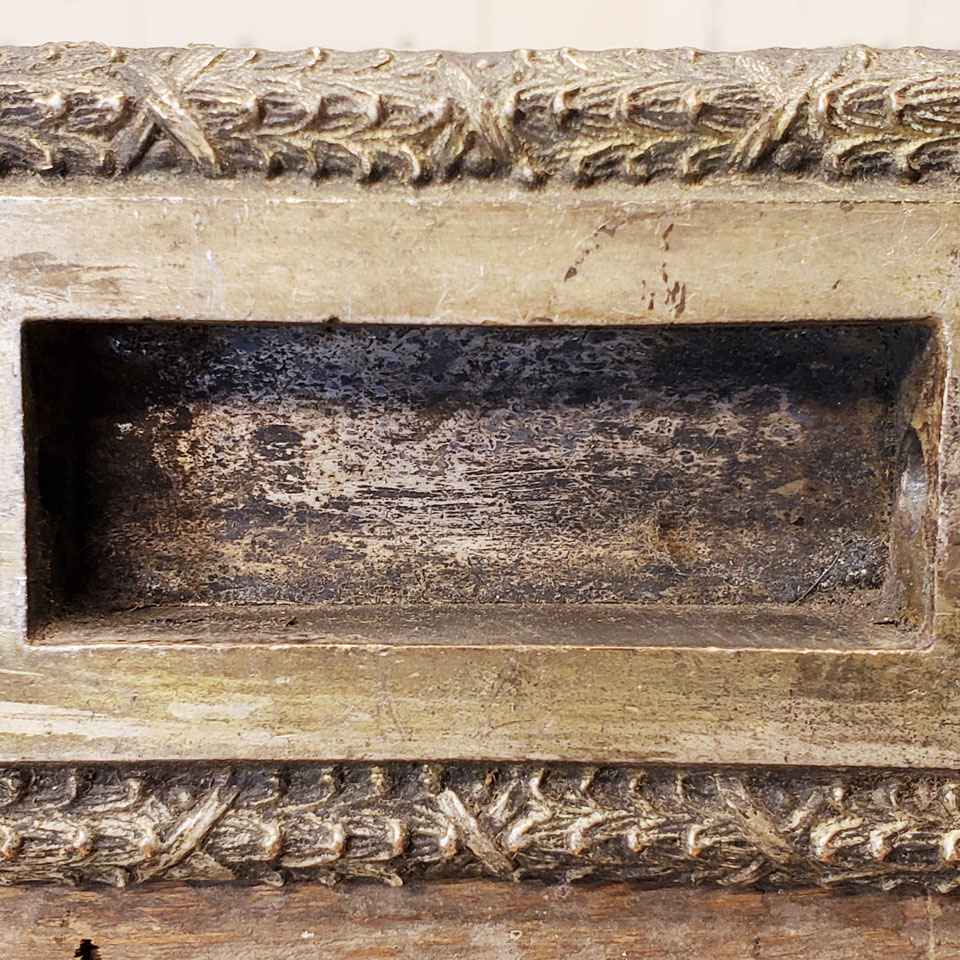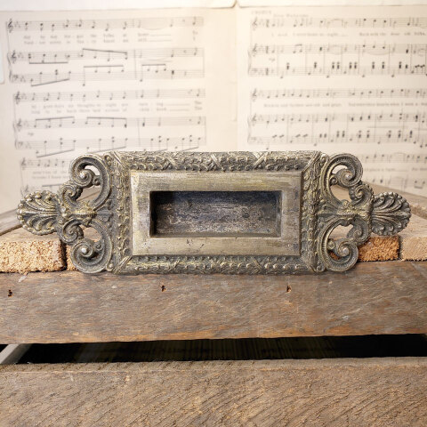 Antique architectural salvage cast bronze Chicago Hardware Co. recessed window sash lift hardware measuring approx. 6 3/8" wide x 2 1/8" tall x 5/8" front to back. Recessed area measures 2 1/4" x 7/8". Sold individually. Condition may vary. Priced at $45/each.