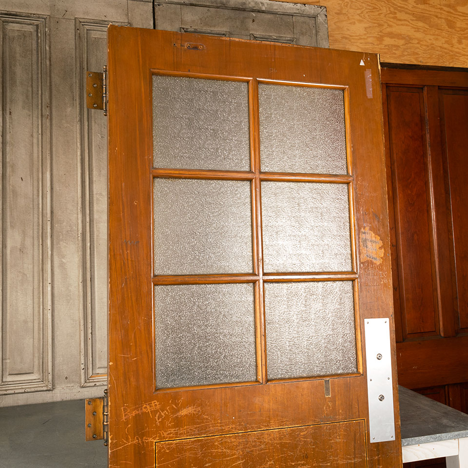 Vintage architectural salvage BOYS school restroom door with hardware measuring approx. 35 7/8" wide x 84" tall x 1 3/4" thick. Condition is consistent with age and use, see photos to evaluate.