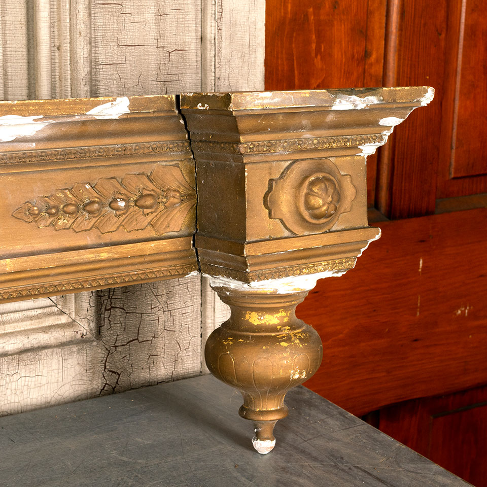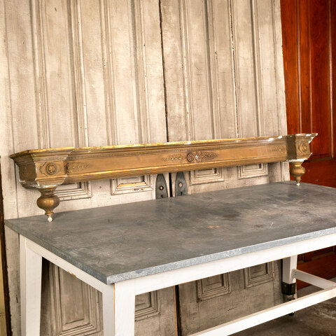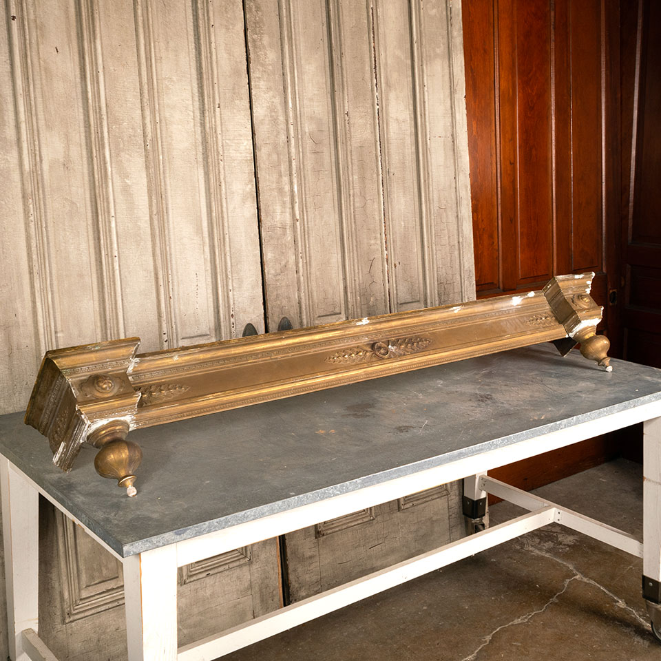 Antique architectural salvage ornate wood window valance measuring approx. 69 7/8" wide x 12" tall x 10" front to back. See photos to evaluate condition.