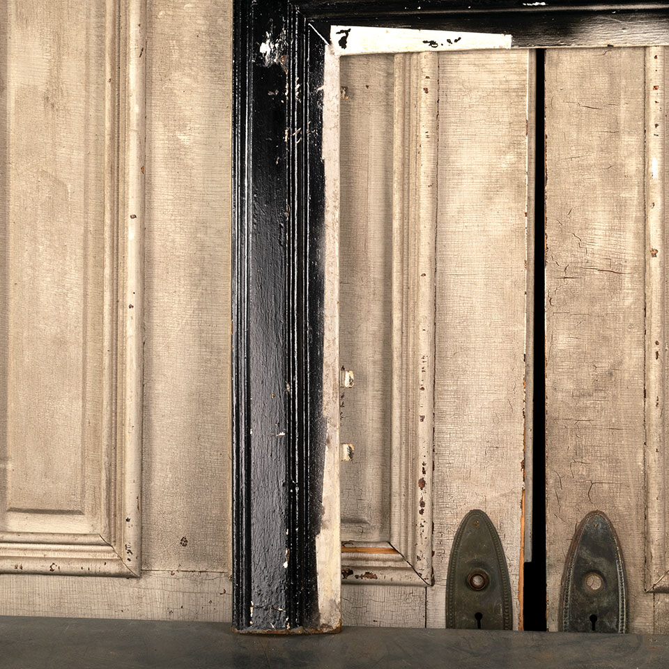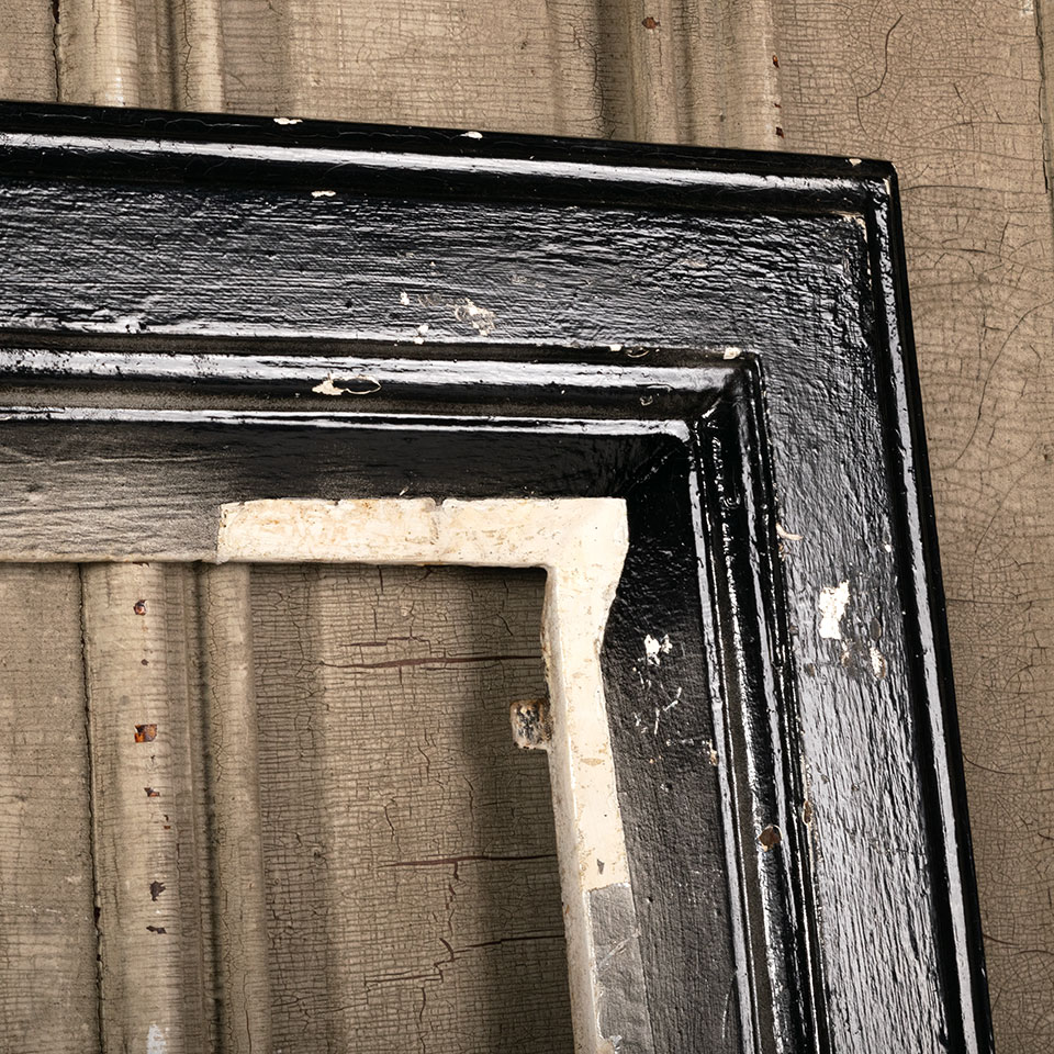 Antique architectural salvage cast iron fireplace surround measuring approx. 30 1/16" wide x 32 3/8" tall x 2 1/4" front to back. The interior firebox opening measures approx. 20" wide x 27 1/4" tall. See photos to evaluate condition.