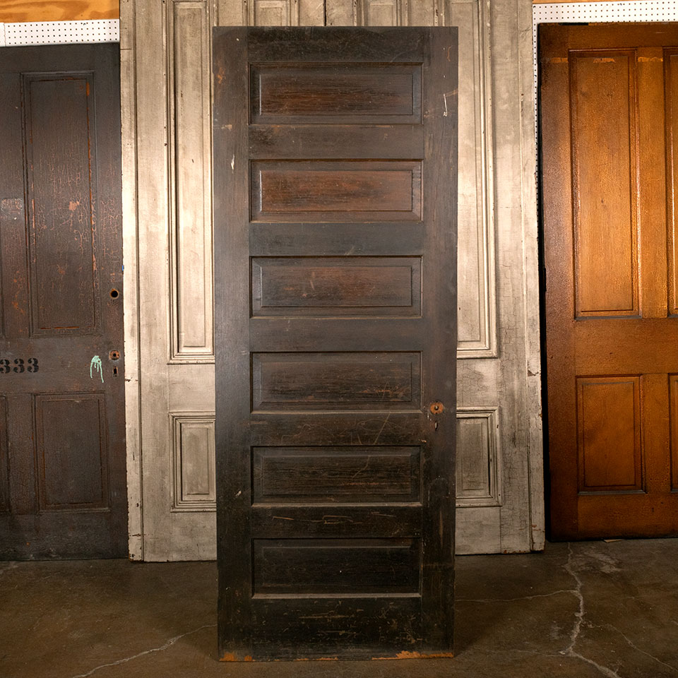 Antique architectural salvage 6 horizontal panel pine interior door measuring approx. 31 3/4" wide x 84" tall x 1 3/8" thick. There's some wood loss along the bottom of the door. See photos to evaluate condition.