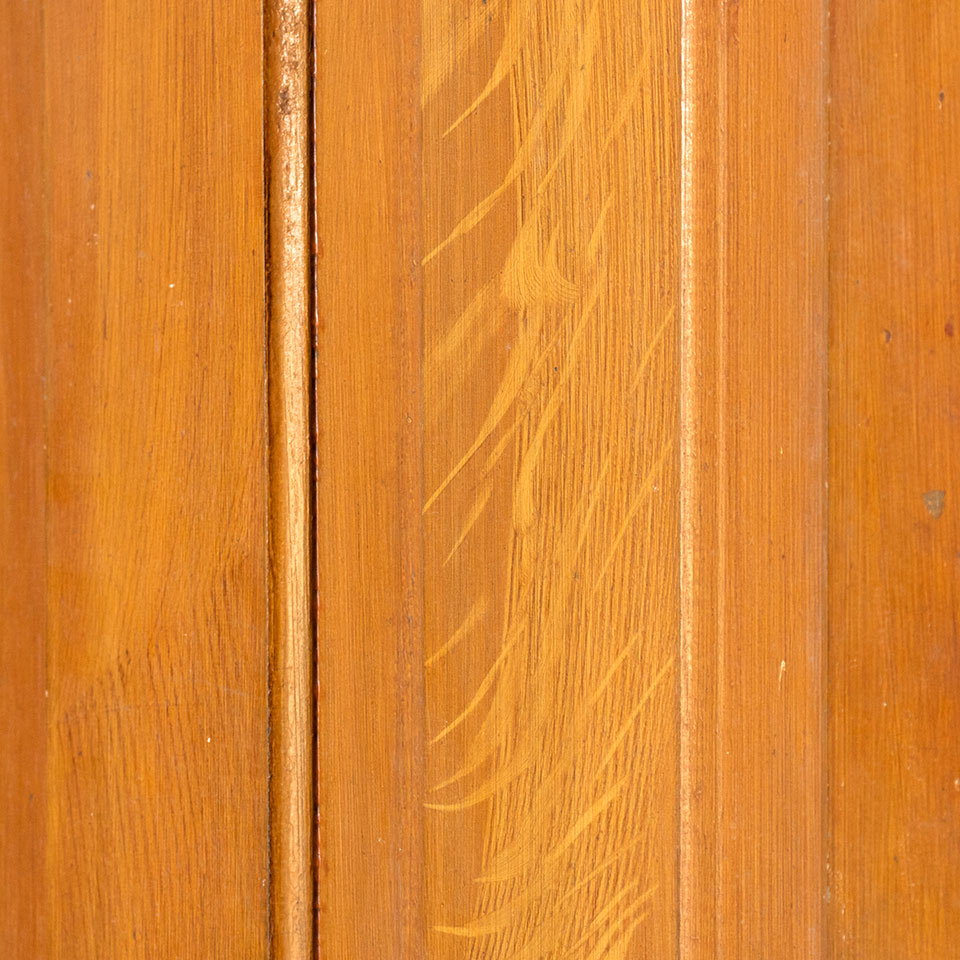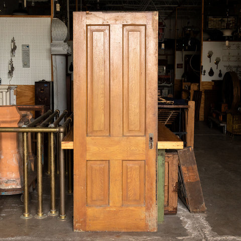 Vintage antique architectural salvage grain painted four panel interior wood door measuring approximately 29 7/8" wide x 77 7/8" tall x 1 3/8" thick.