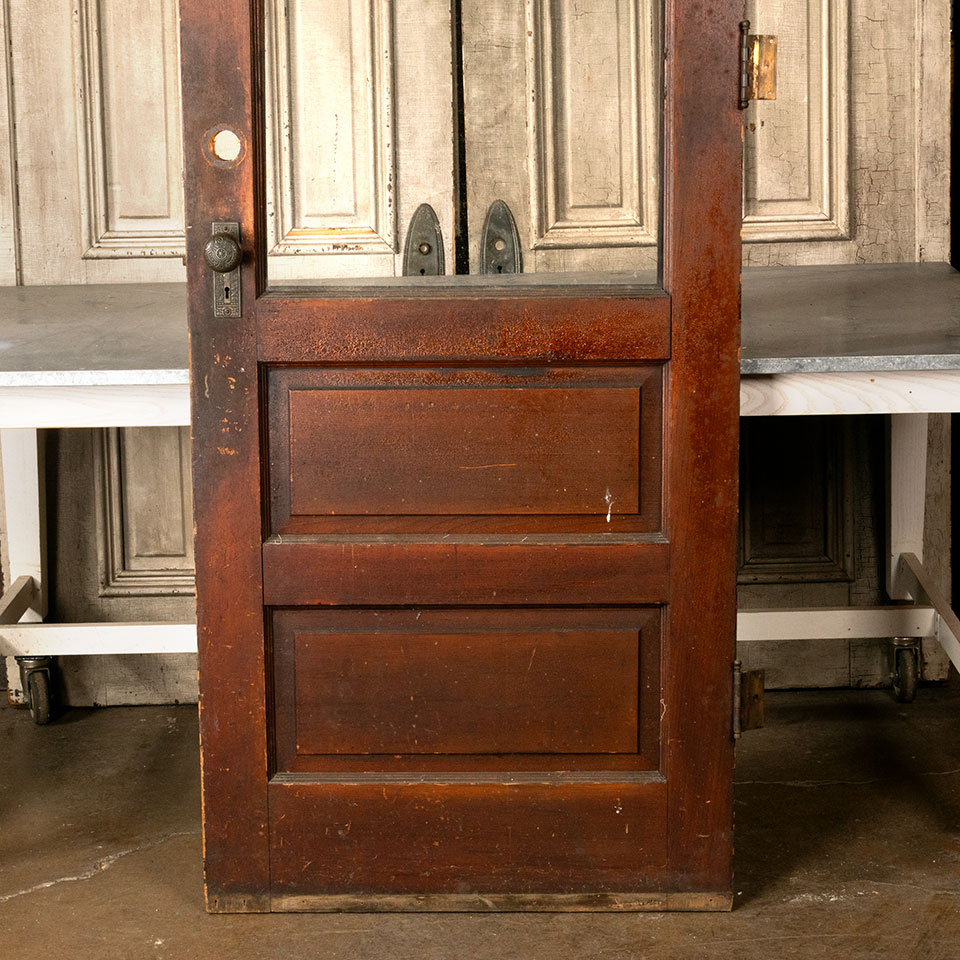 Antique architectural salvage half-lite wood entry door with original hardware measuring approx. 32" wide x 95 5/8" tall x 1 3/4" thick. See photos to evaluate condition. Priced at $2,250 for the door and $250 for the hardware.