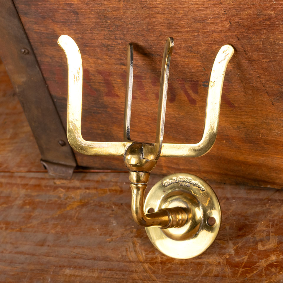 Architectural salvage antique Brasscrafters brass bathroom cup holder circa 1900 measuring approx. 2 1/2" wide x 5" tall x 3 5/8" front to back. See photos to evaluate condition. Priced at $150/each.