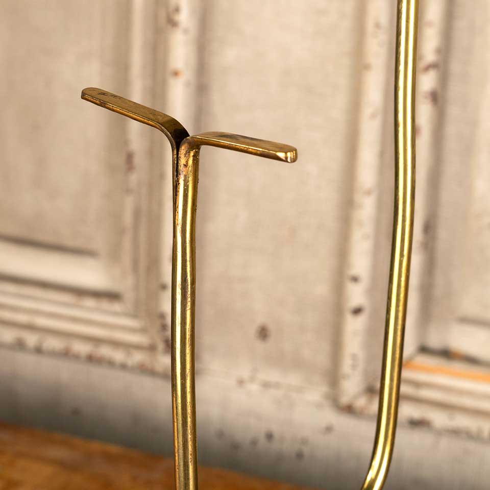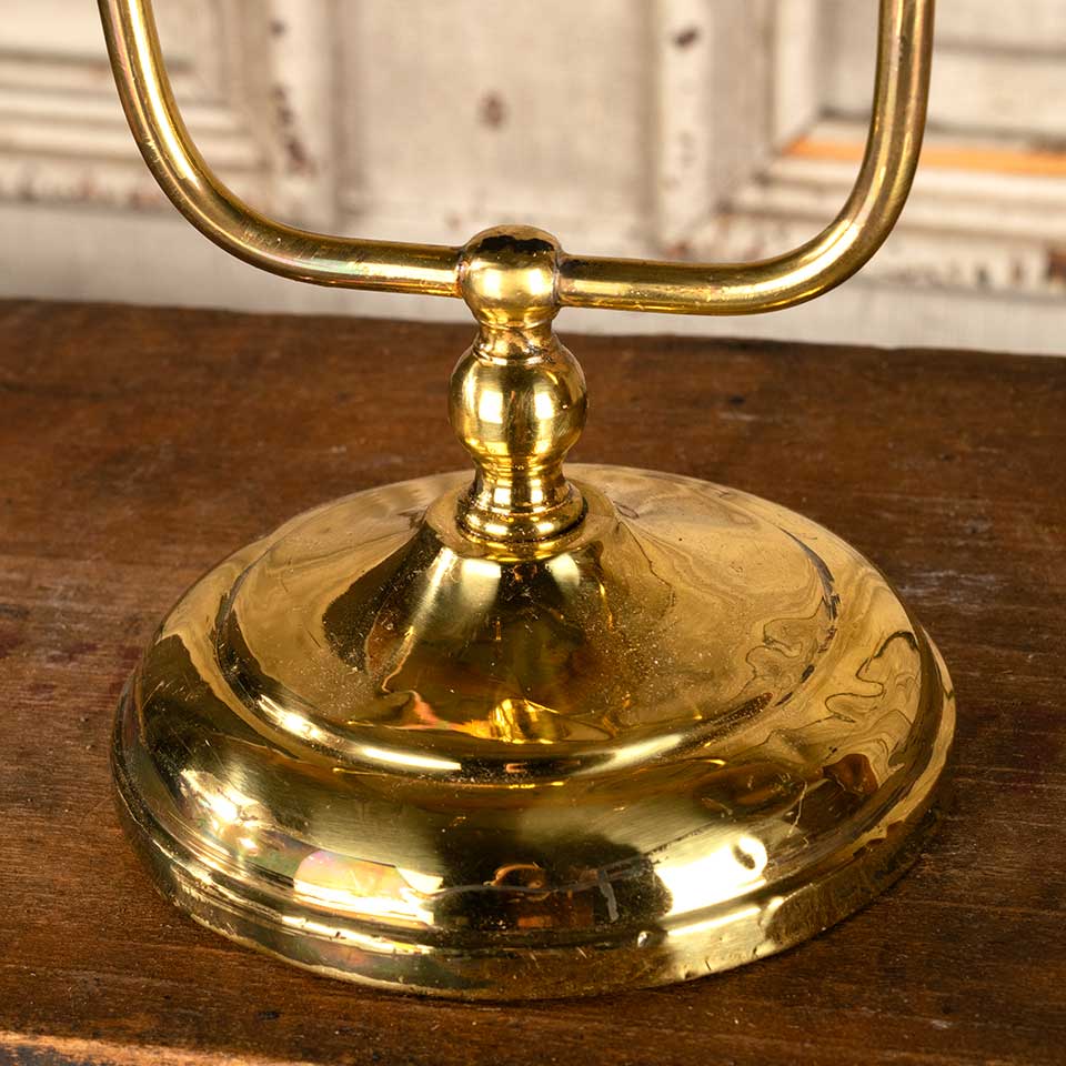 Architectural salvage antique brass hand towel and wash cloth sink top stand measuring approx. 11" tall with a 4 3/8" diameter base. Marked on bottom McKENNA BROS. BRASS CO. LT. PGH. PA. See photos to evaluate condition.