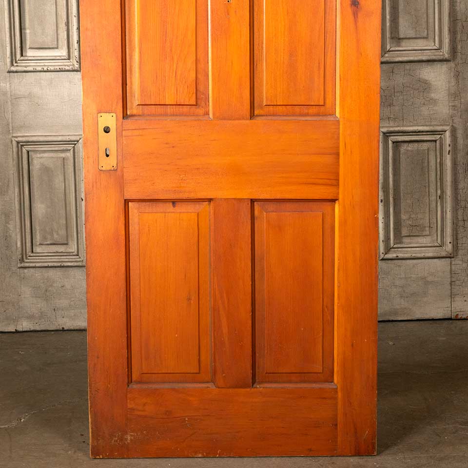 Antique architectural salvage wood 4 panel interior door measuring approx. 29 3/4" wide x 76 3/4" tall x 1 3/8" thick. This door is natural on one side and painted on the other. See photos to evaluate condition.