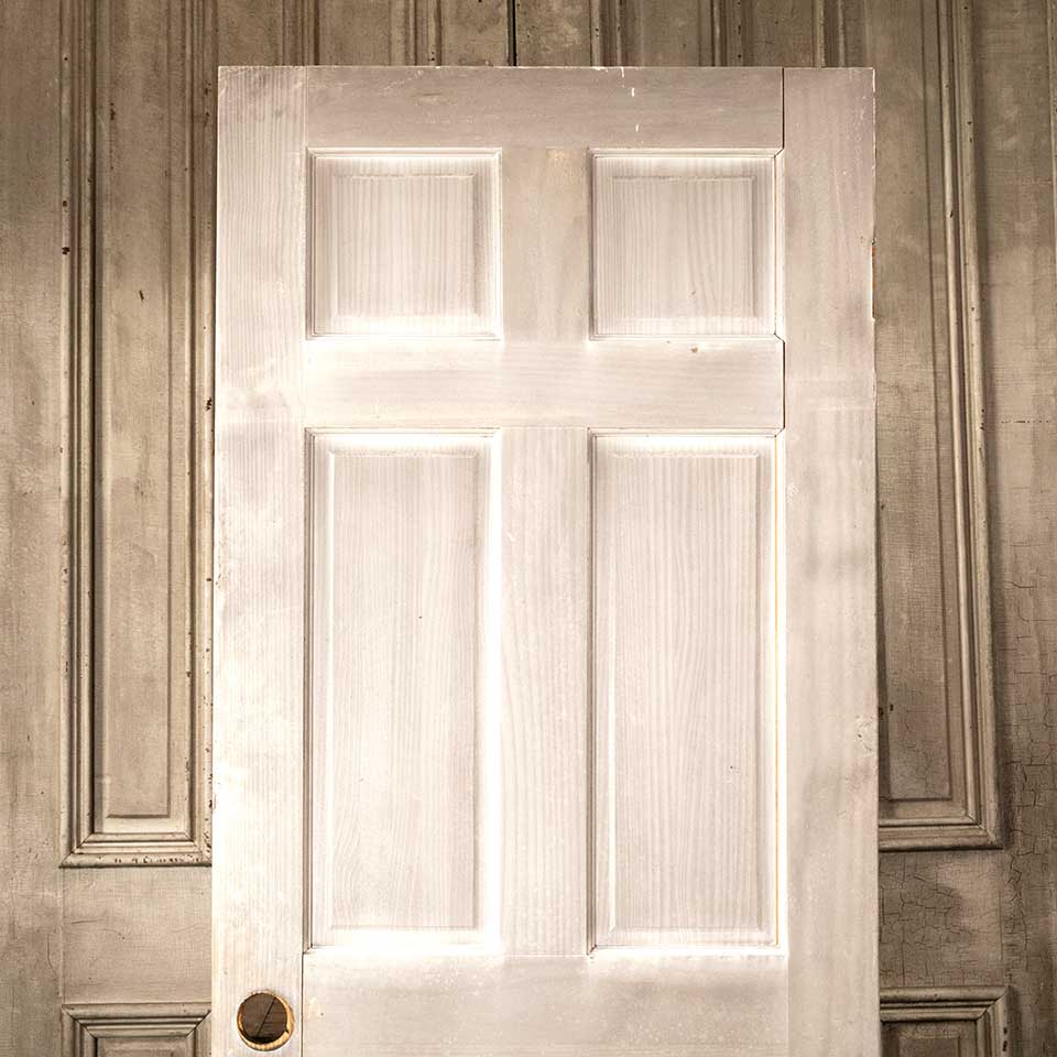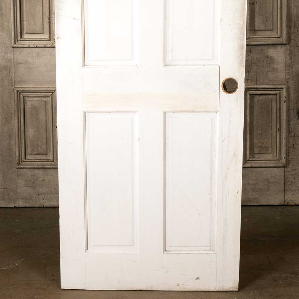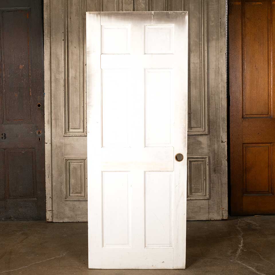 Architectural salvage six panel painted wood interior door measuring approx. 30" wide x 77 1/4" tall x 1 3/8" front to back. See photos to evaluate condition.