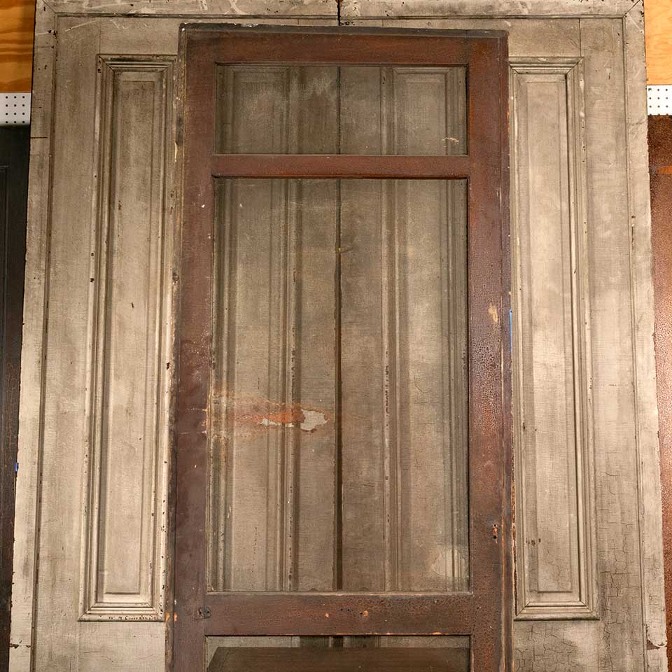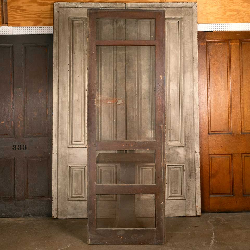 Architectural salvage antique tall wood screen door measuring approx. 31 3/4" wide x 94 3/4" tall x 1 3/16" thick. See photos to evaluate condition.