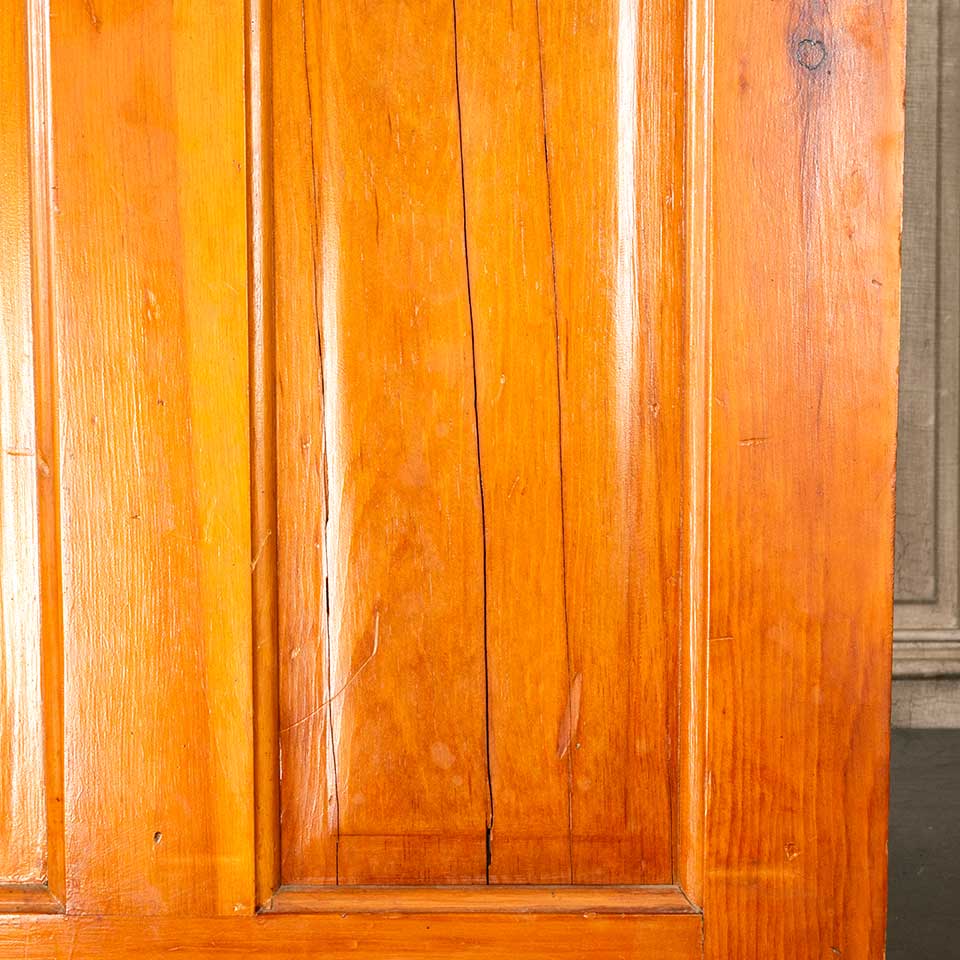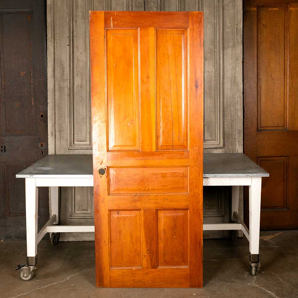 Architectural salvage antique 5 panel wood interior door measuring approx. 31" wide x 77 3/4" tall x 1 3/8" thick. There are cracks in one of the upper panels. See photos to evaluate condition.