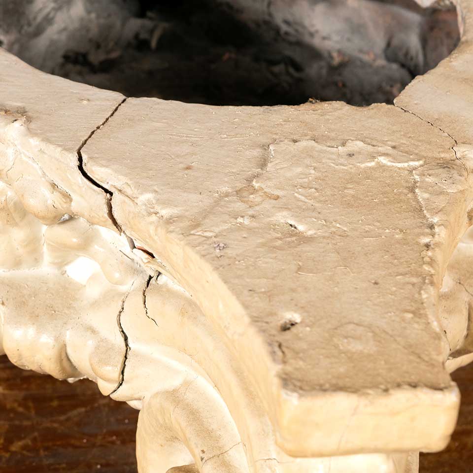 Architectural salvage antique cast plaster Ionic column capital measuring approx. 15" x 15" x 6" tall. There's some damage on this piece. See photos to evaluate condition.
