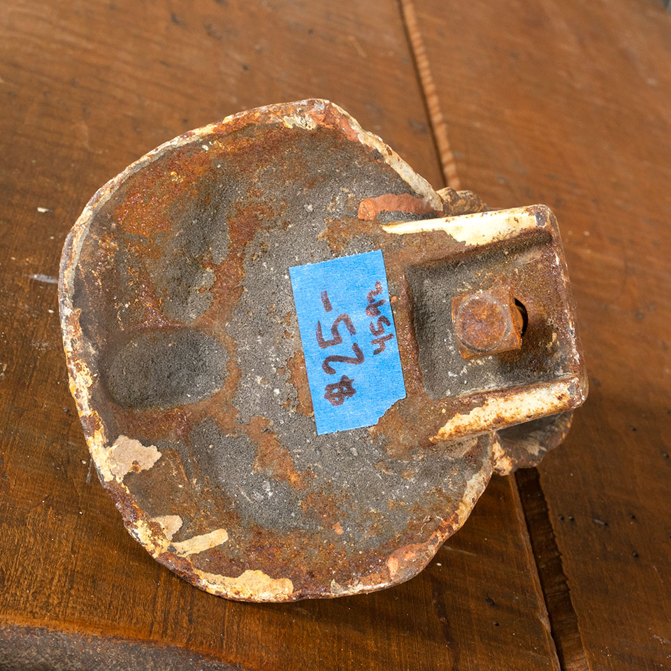 Antique architectural salvage cast iron bathtub claw foot measuring approximately 4 1/2" wide x 7" tall x 4 1/2" front to back. Color and condition may vary. Priced at $25/each.
