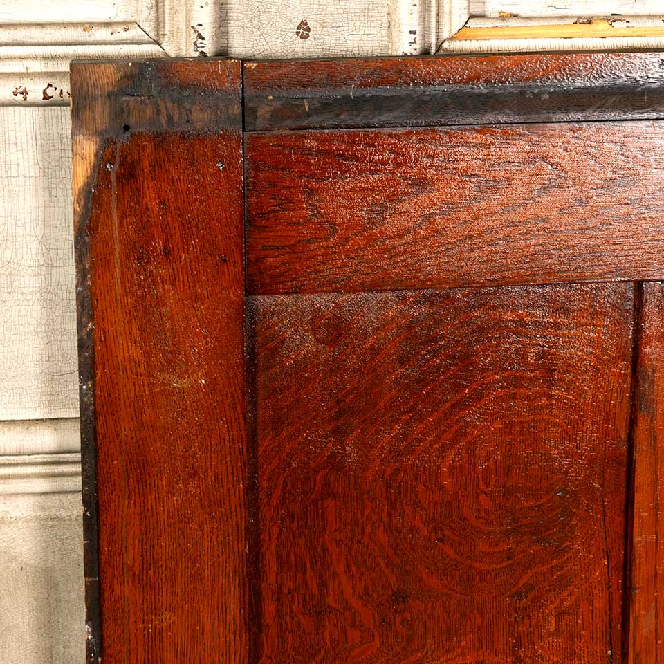 Architectural salvage antique oak three panel built-in dining room buffet wall panel measuring approx. 47 1/2" wide x 36" tall x 3/4" thick. See photos to evaluate condition.