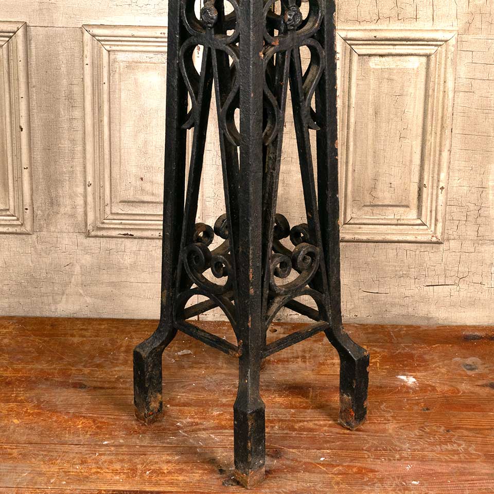 Architectural salvage antique heavy cast iron exterior lamp base measuring approx. 46" tall with an 8 1/2" square top and a 12 1/8" square base. See photos to evaluate condition.