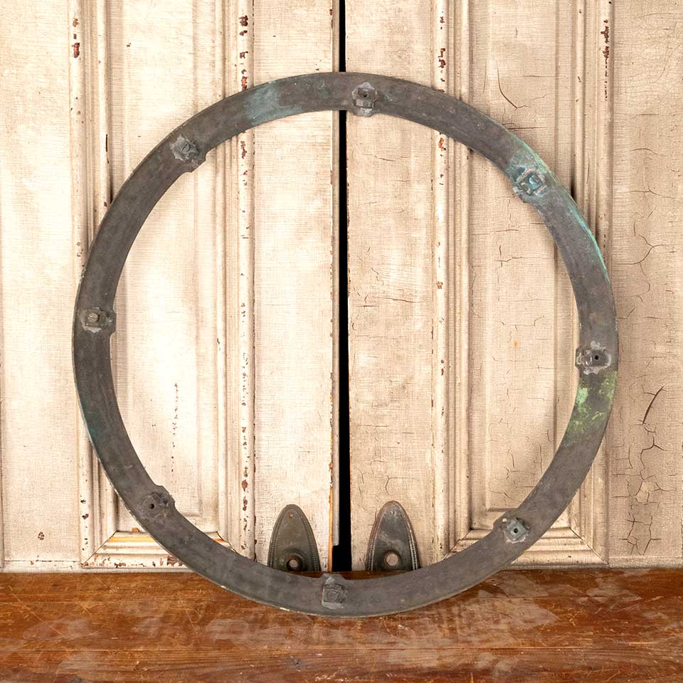 Architectural salvage large ornate antique brass chandelier ring measuring approx. 28 1/4" in diameter x 1 1/8" thick. See photos to evaluate condition.