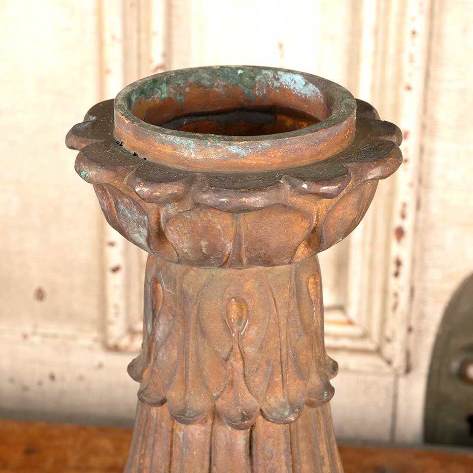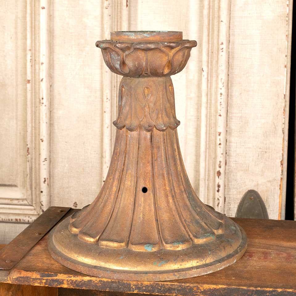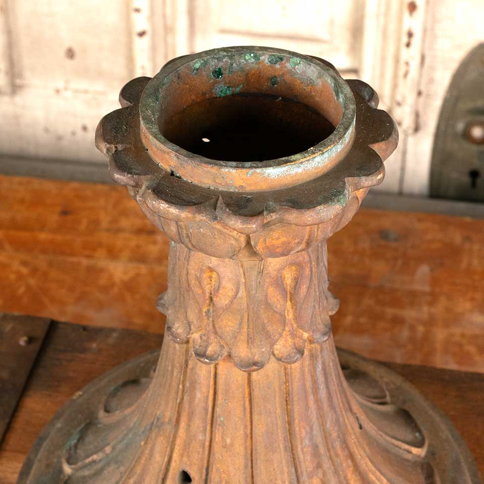 Architectural salvage antique ornate heavy cast brass chandelier part measuring approx. 9" tall with a 2 7/8" diameter top and an 8 3/8" diameter base. These would make great repurposed candle holders. Color and condition may vary, see photos to evaluate. Priced at $95/each.