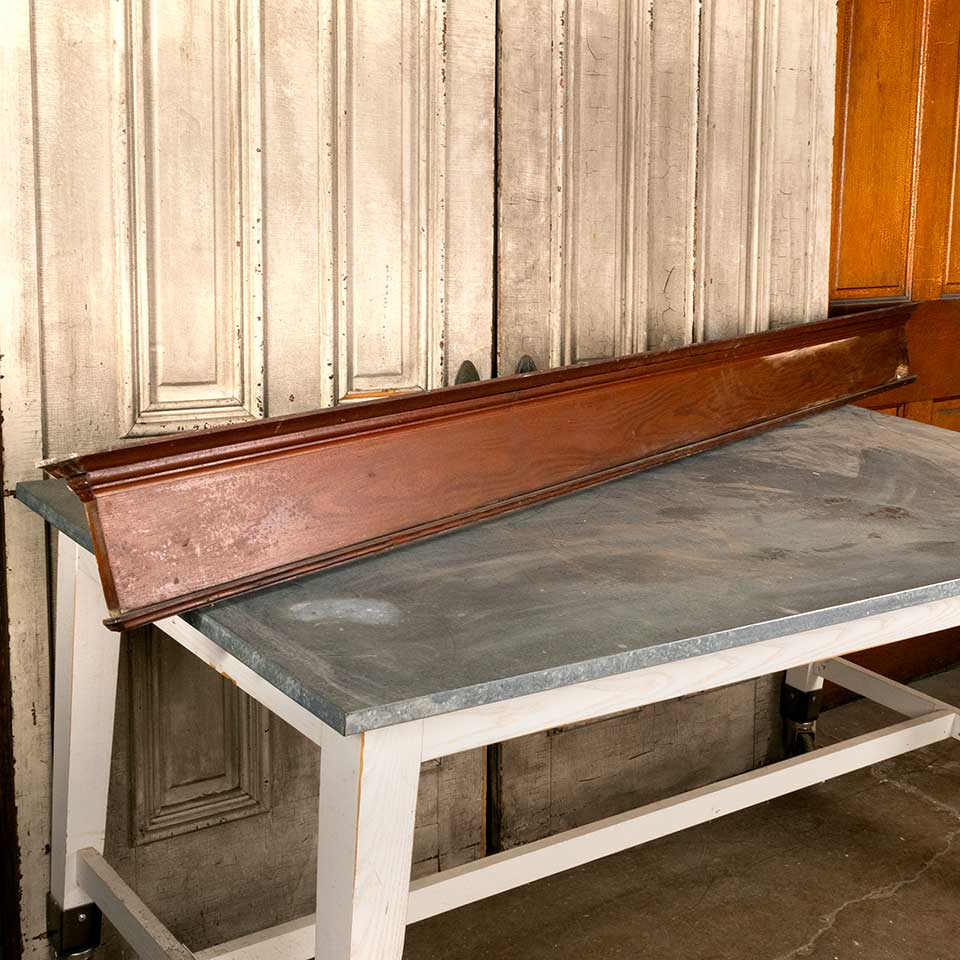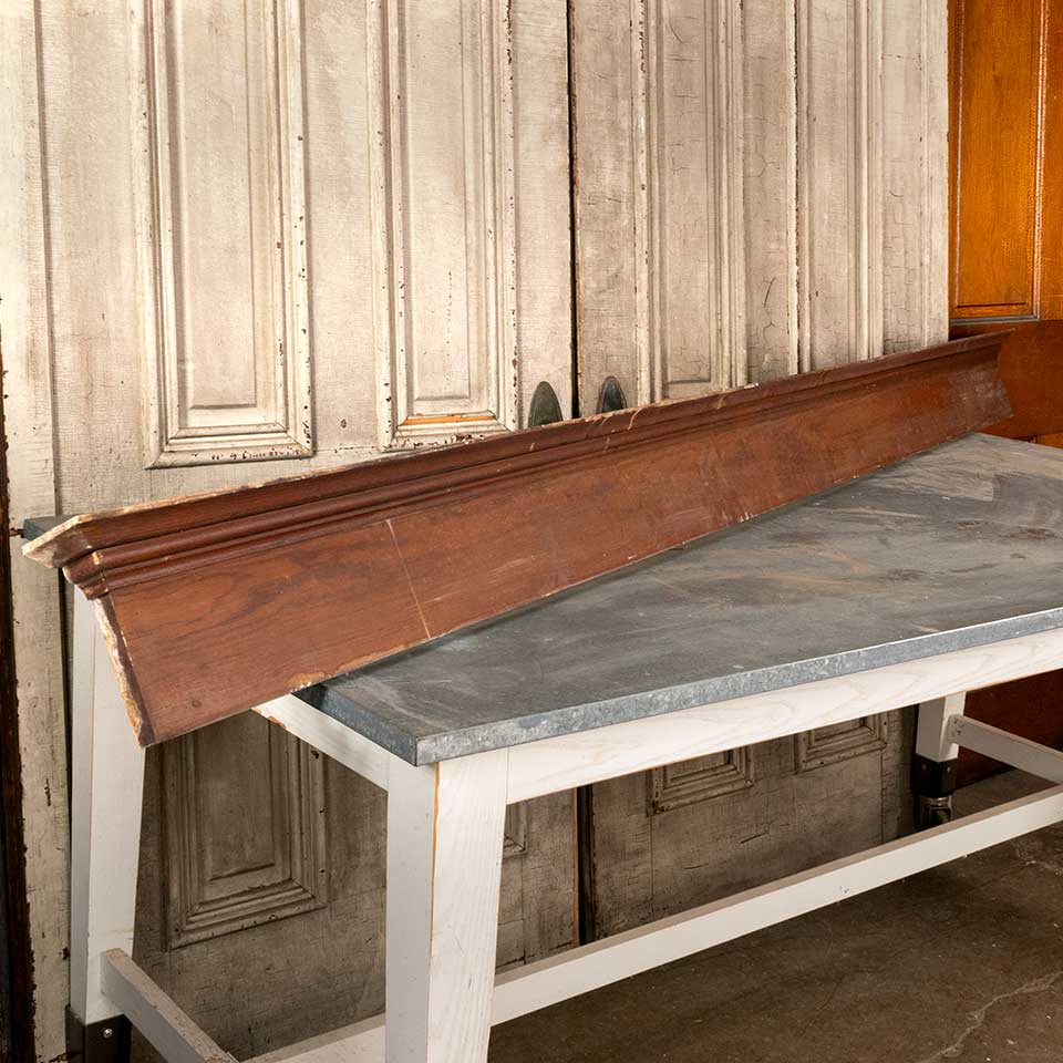 Architectural salvage antique pine interior window or door header trim measuring approx. 98 7/8" wide x 7 1/2" tall x 2 11/16" front to back. One header is missing the bottom trim piece. See photos to evaluate condition. Priced at $95/each.