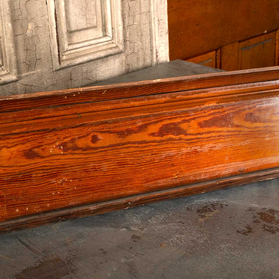 Architectural salvage antique pine interior window or door header trim measuring approx. 77 3/4" wide x 7 1/2" tall x 2 11/16" front to back. See photos to evaluate condition. Priced at $75/each.