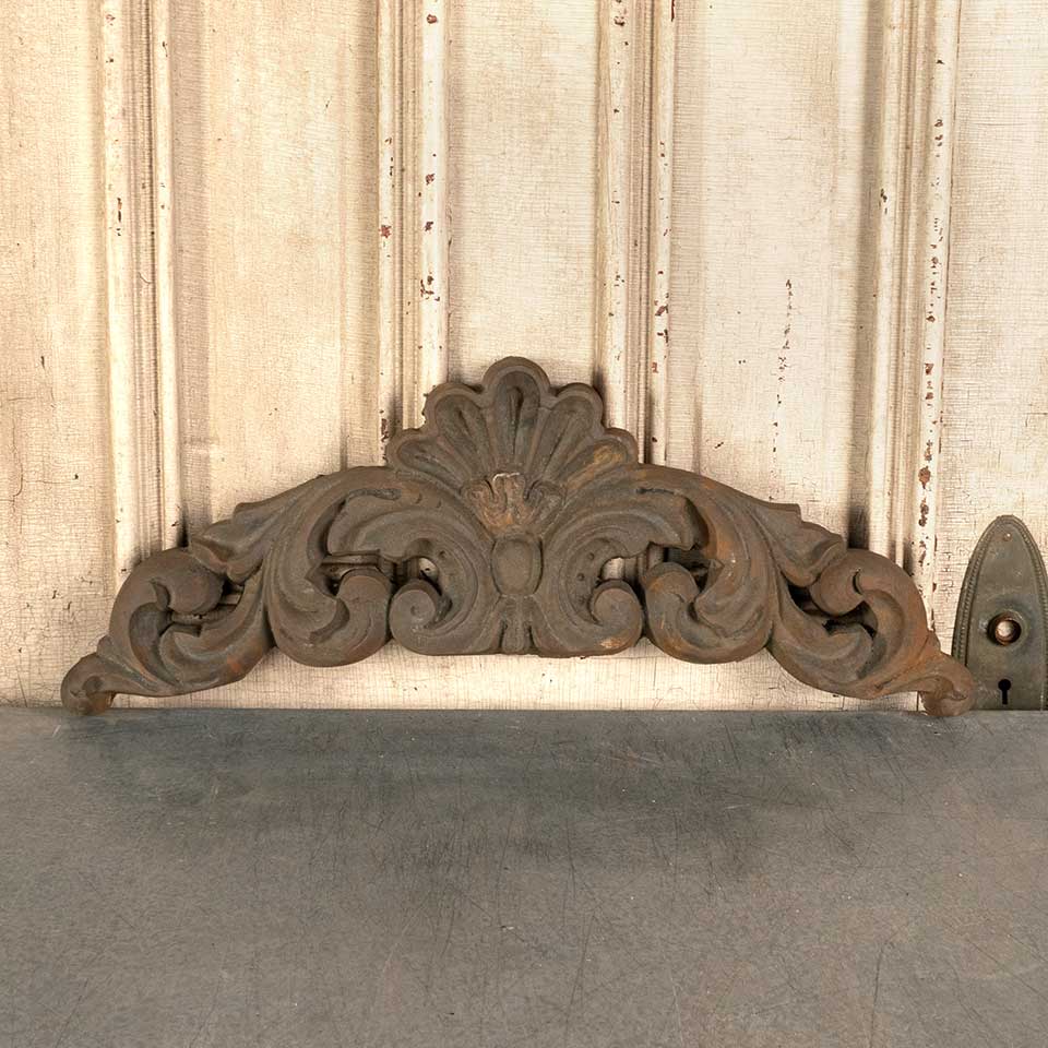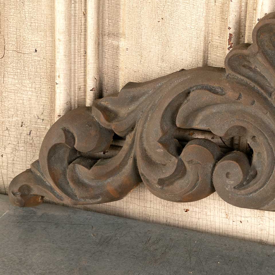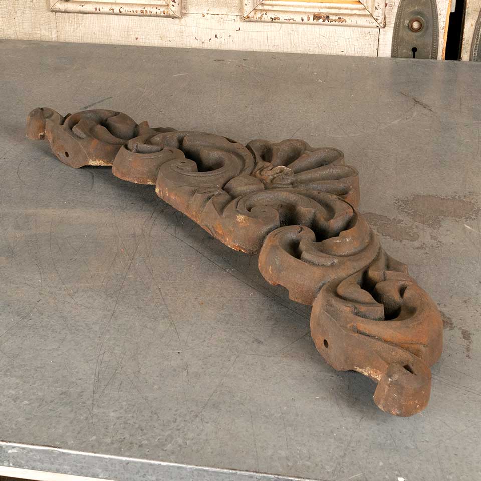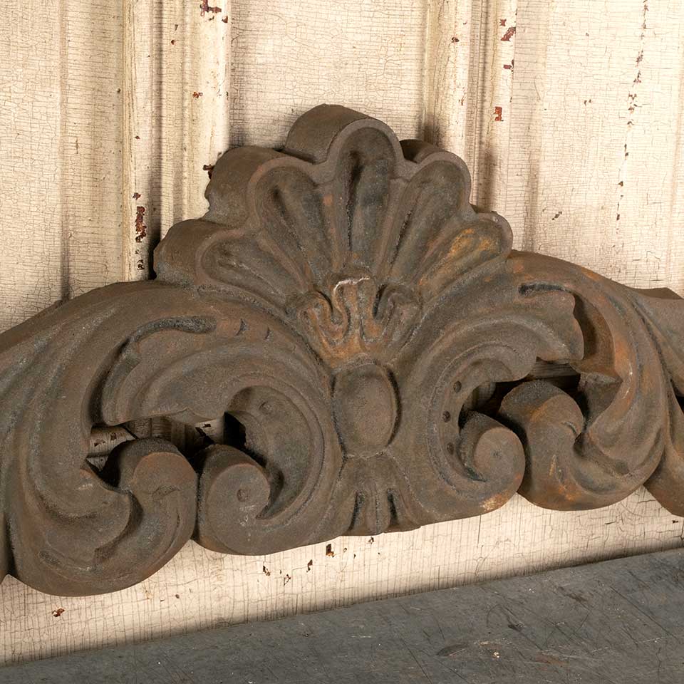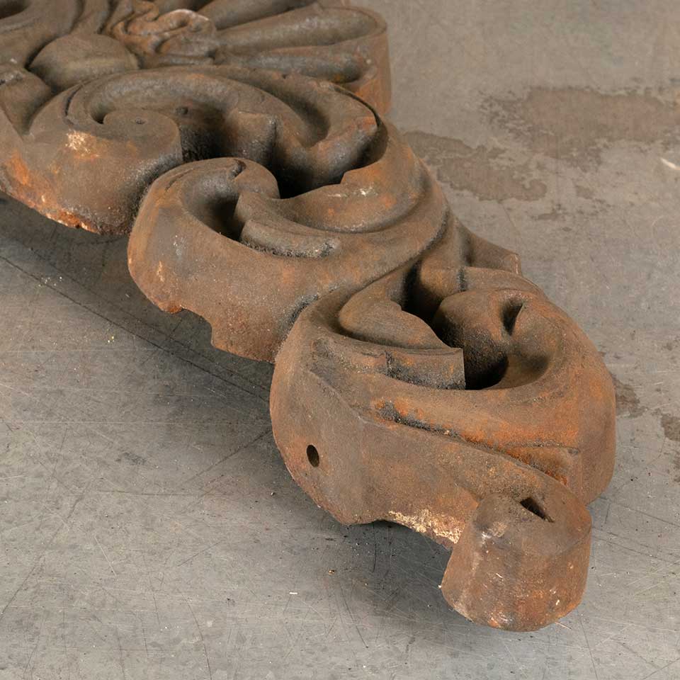 Architectural salvage antique cast iron building ornament measuring approx. 25 3/4" wide x 10" tall x 2" front to back. See photos to evaluate condition.