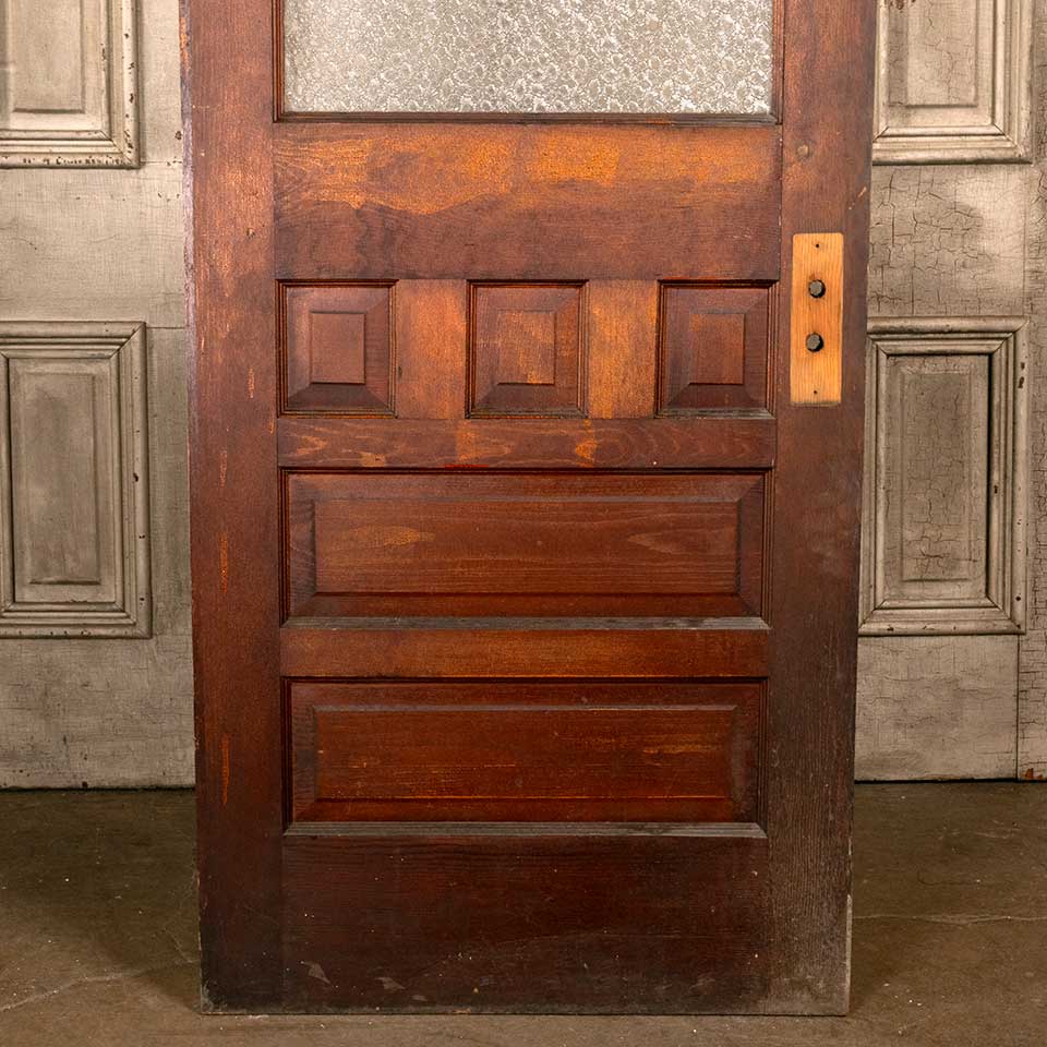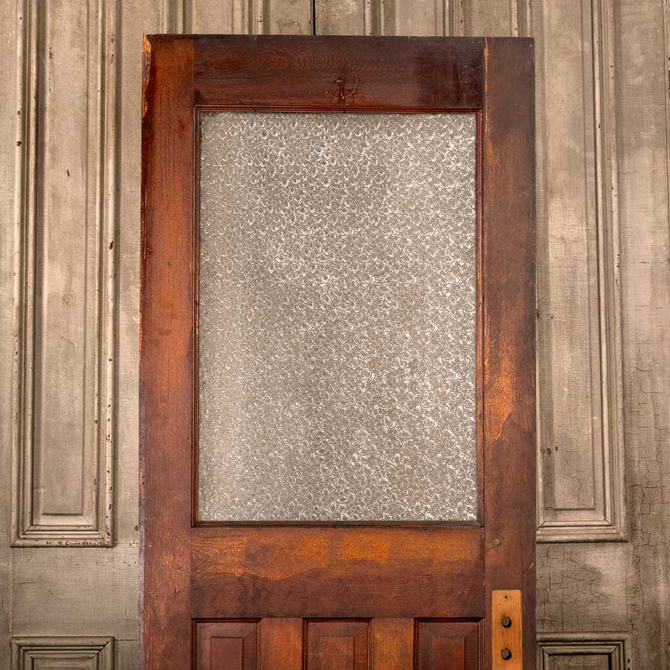 Architectural salvage antique divided half lite wood door with opaque textured Florentine glass measuring approx. 30 1/16" wide x 78 1/8" tall x 1 3/8" thick. See photos to evaluate condition.