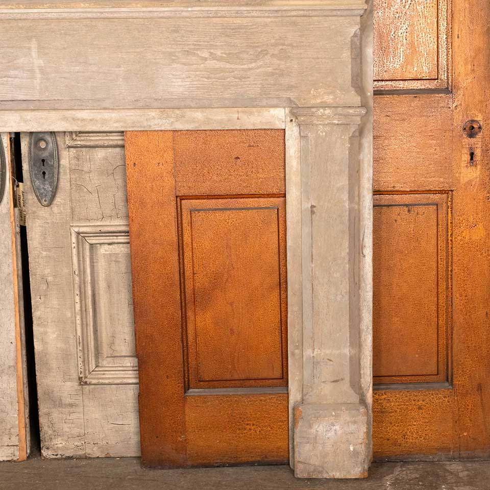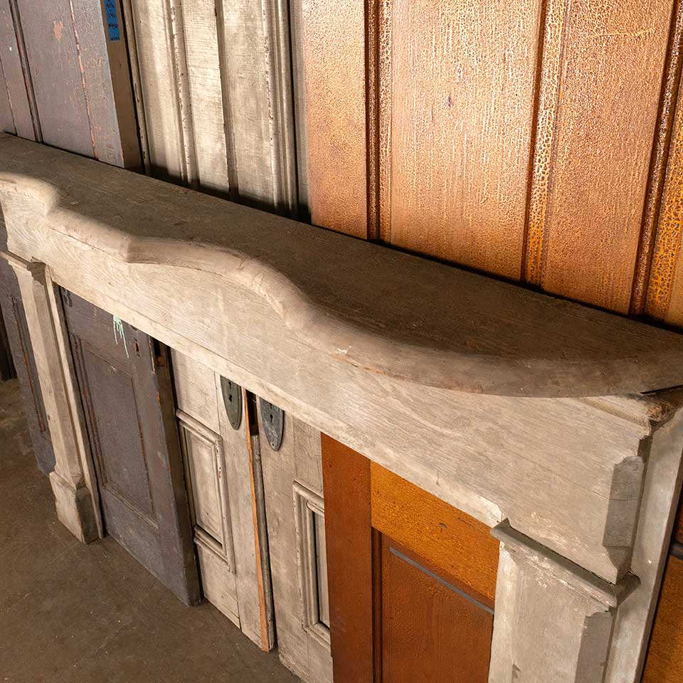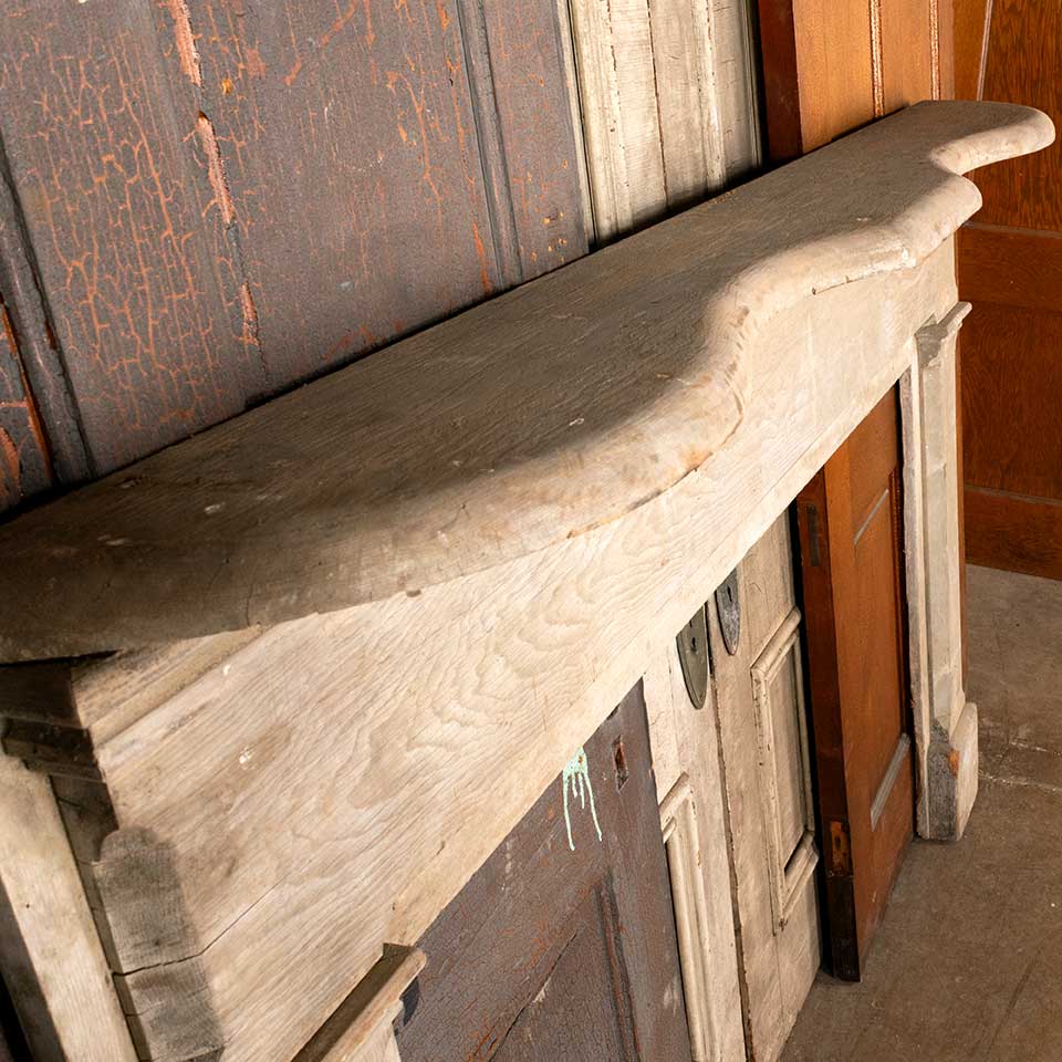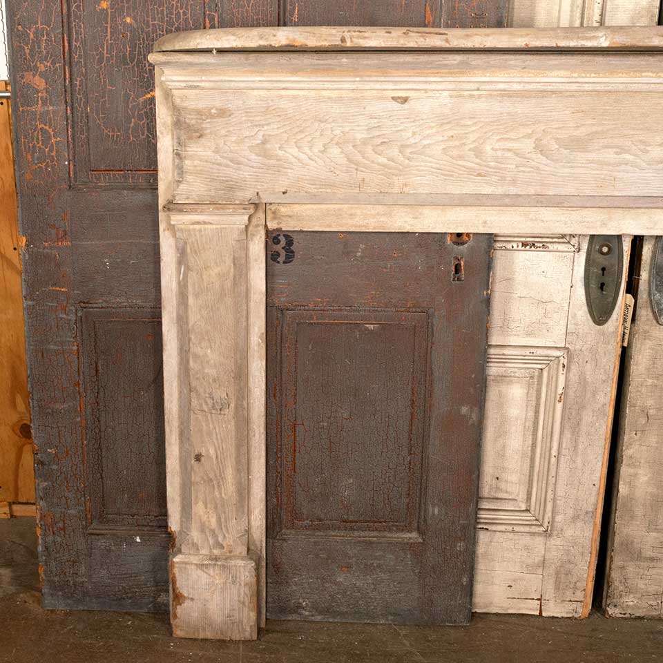Architectural salvage antique primitive wood fireplace mantel / mantle measuring approx. 78 3/4" wide x 52 3/8" tall x 10" front to back. The interior firebox opening measures approx. 59 7/8" wide x 36 3/4" tall. There are gnaw marks near the bottom on both sides of the mantel. See photos to evaluate condition.
