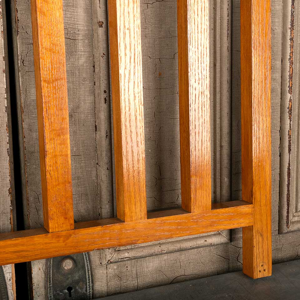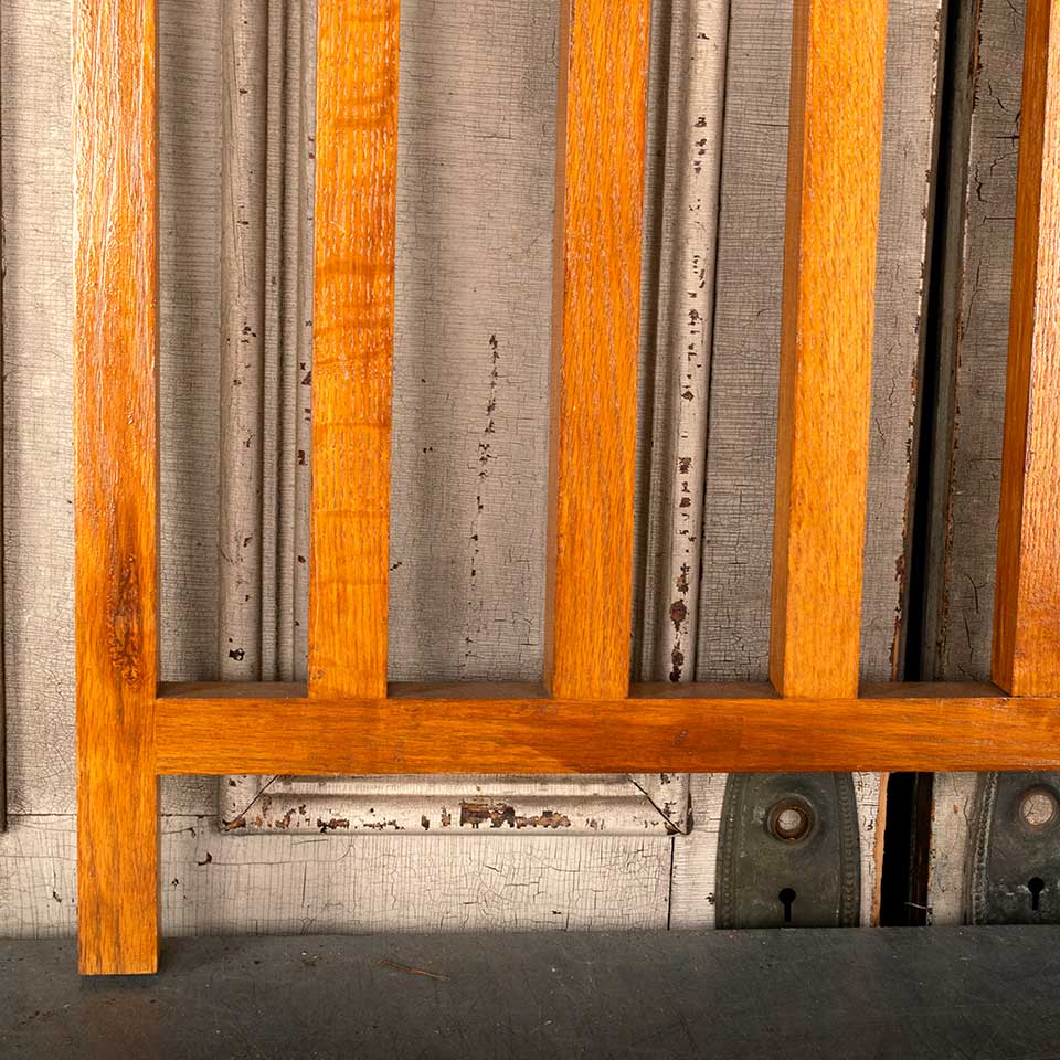 Architectural salvage oak interior gate railing measuring approx. 34" wide x 30" tall (overall) x 1 1/2" thick. See photos to evaluate condition.