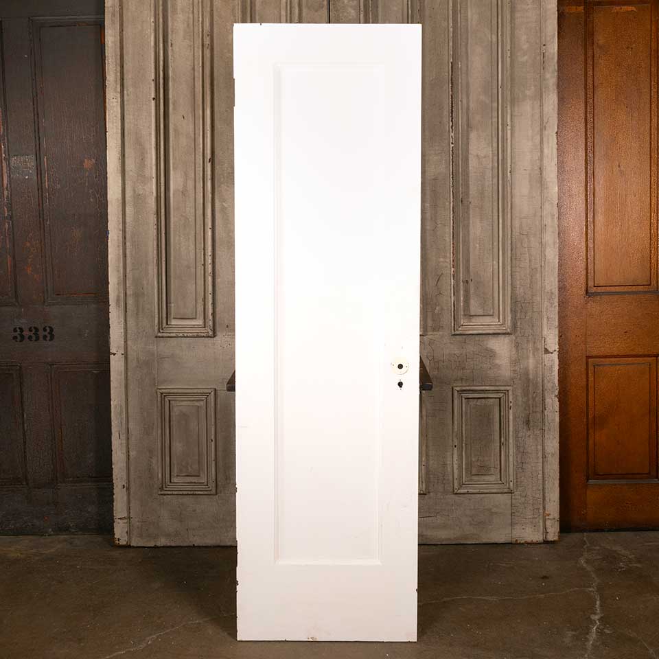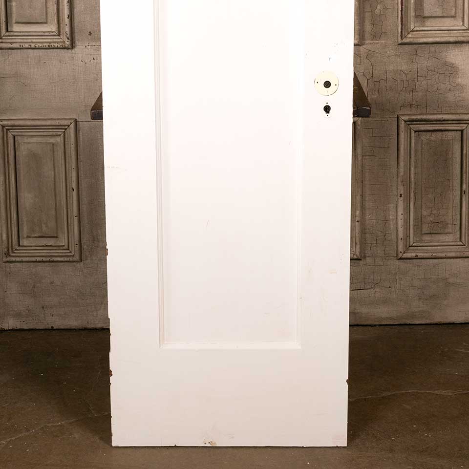 Architectural salvage antique painted wood 1 panel interior door with mortise lock measuring approx. 23 3/8" wide x 78 5/8" tall x 1 3/8" thick. See photos to evaluate condition.