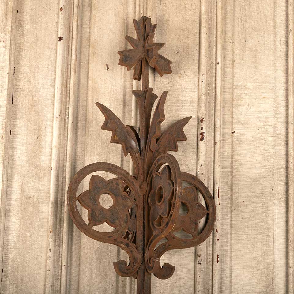 Architectural salvage antique ornate cast iron widow's walk corner post measuring approx. 13 1/4" x 13 1/4" x 42 7/8" tall. There is a repair on the piece. See photos to evaluate condition.