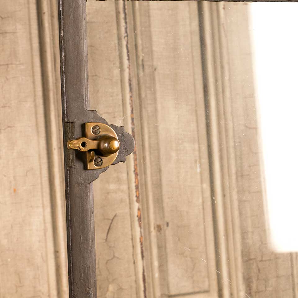 Architectural salvage antique divided five lite steel and glass casement window with original brass latches measuring approx. 15 1/2" wide x 76 1/4" tall x 1 1/2" thick. There are no hinges included. See photos to evaluate condition.