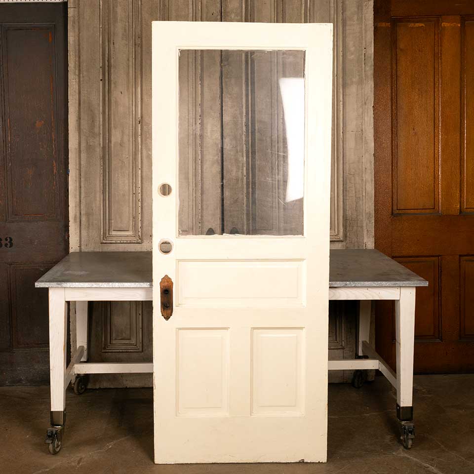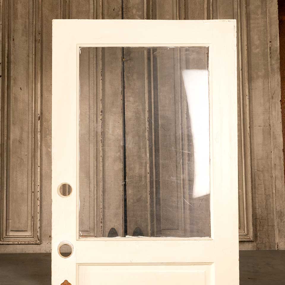 Architectural salvage antique half lite entry door measuring approx. 31 7/8" wide x 79 3/8" tall x 1 3/4" thick. There's plexiglass in the opening. See photos to evaluate condition.