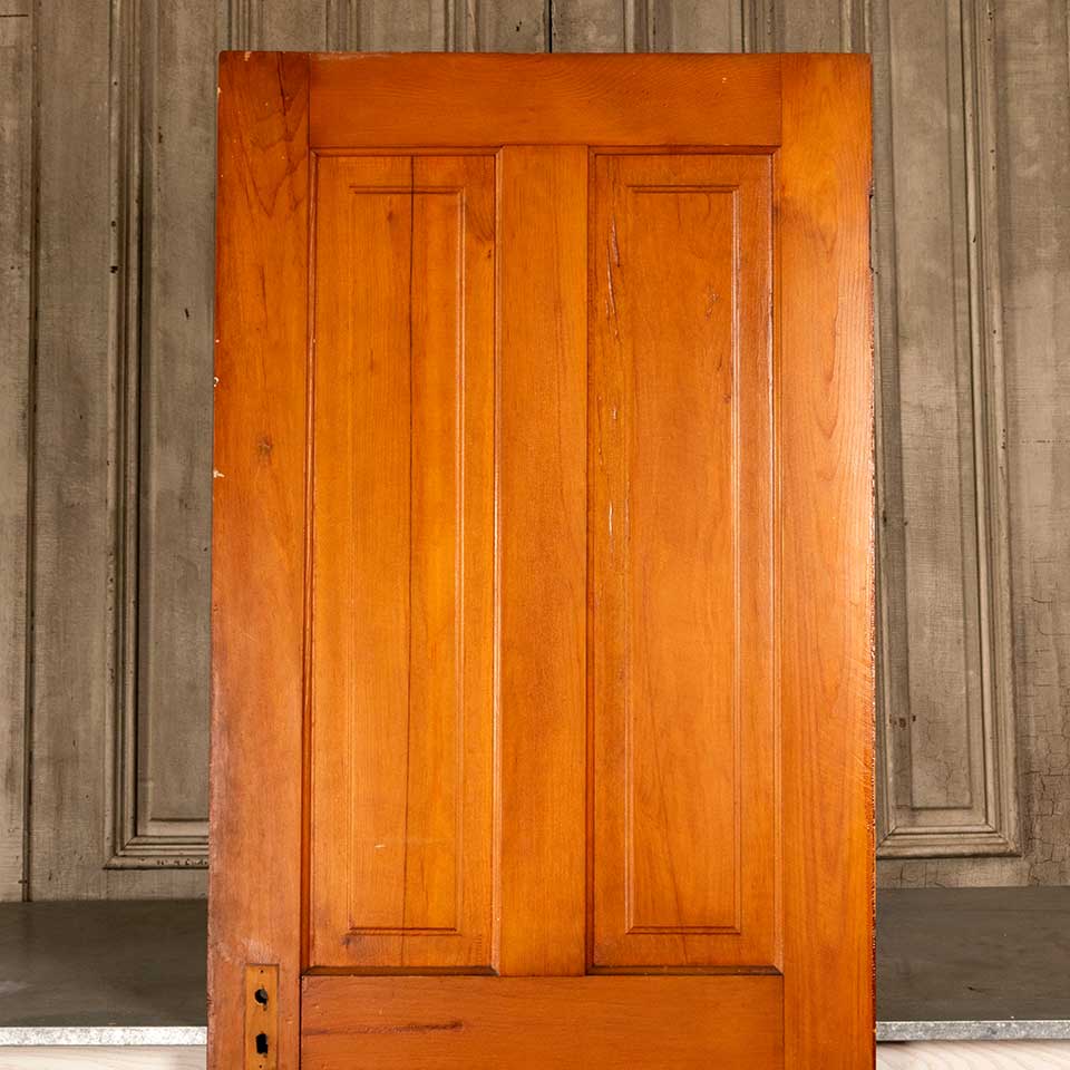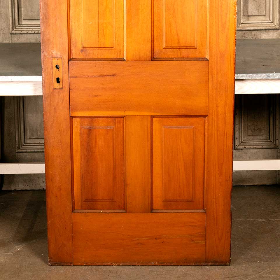 Architectural salvage antique pine four panel interior door measuring approx. 31 7/8" wide x 79 7/8" tall x 1 3/8" thick. One of the top panels has a crack in it. See photos to evaluate condition.