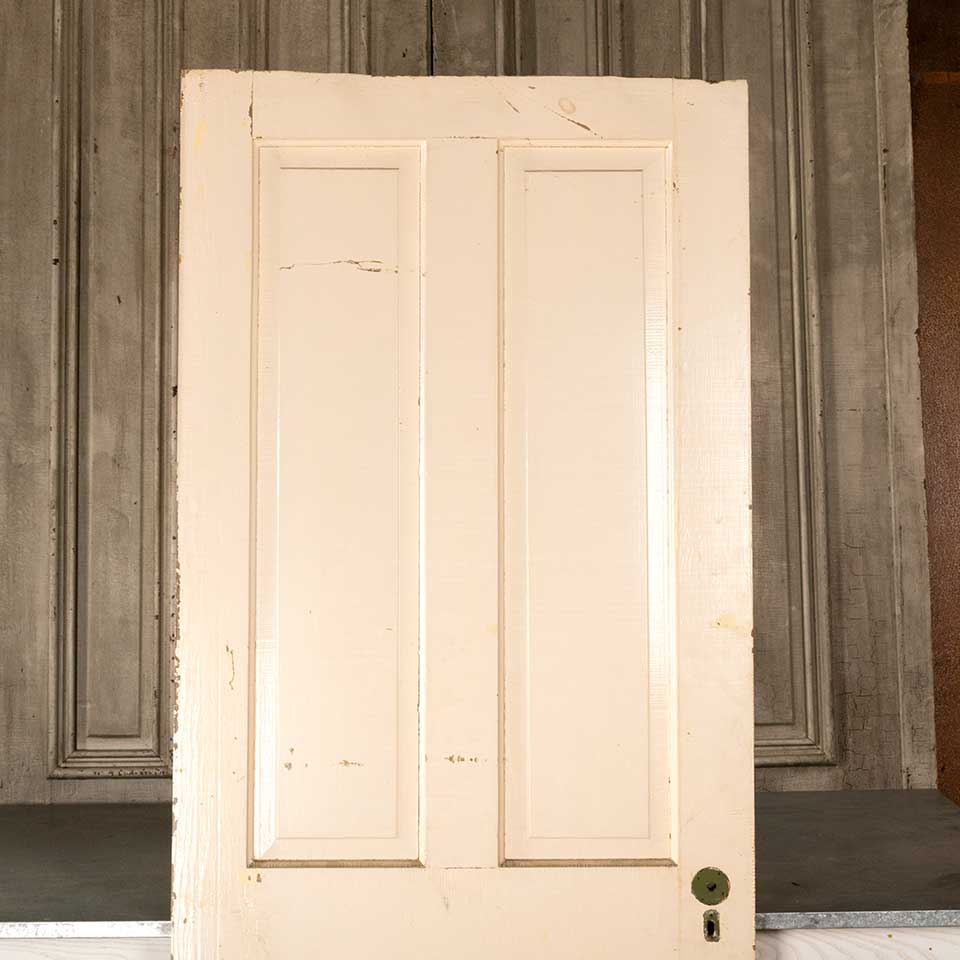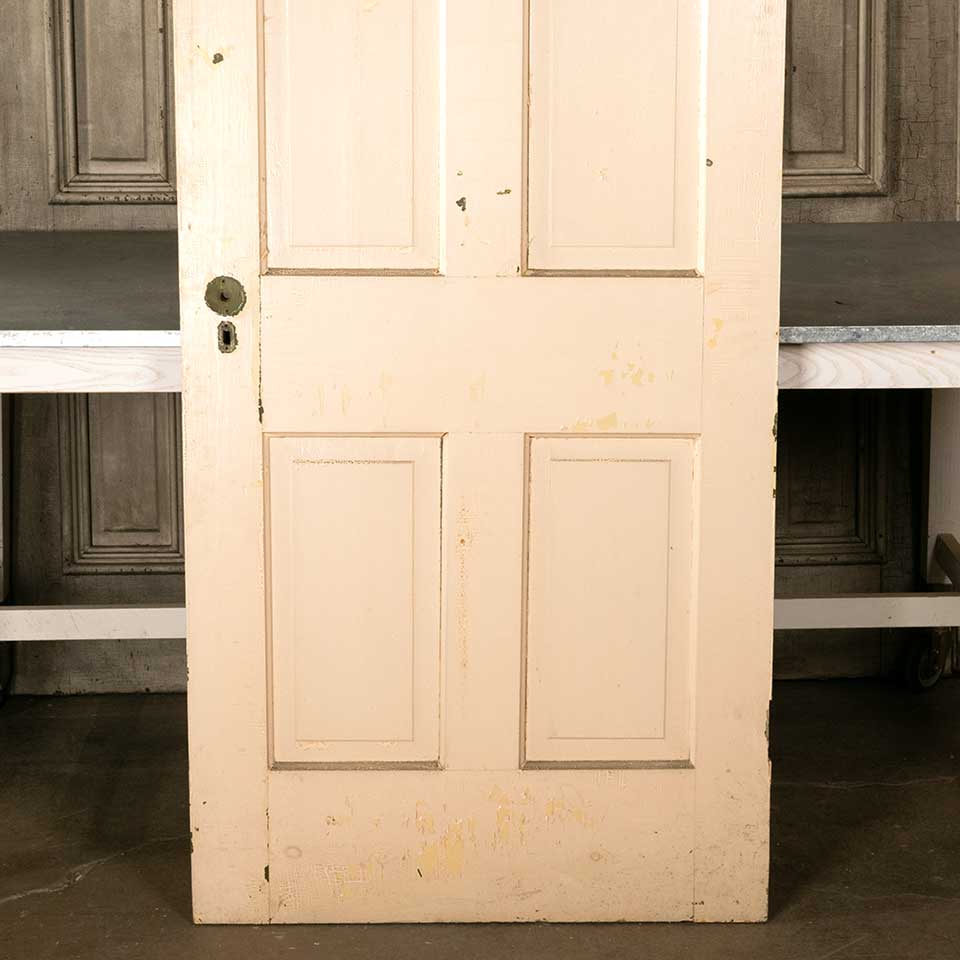 Architectural salvage antique painted wood four panel interior door measuring approx. 31 7/8" wide x 79 3/4" tall x 1 3/8" thick. See photos to evaluate condition.