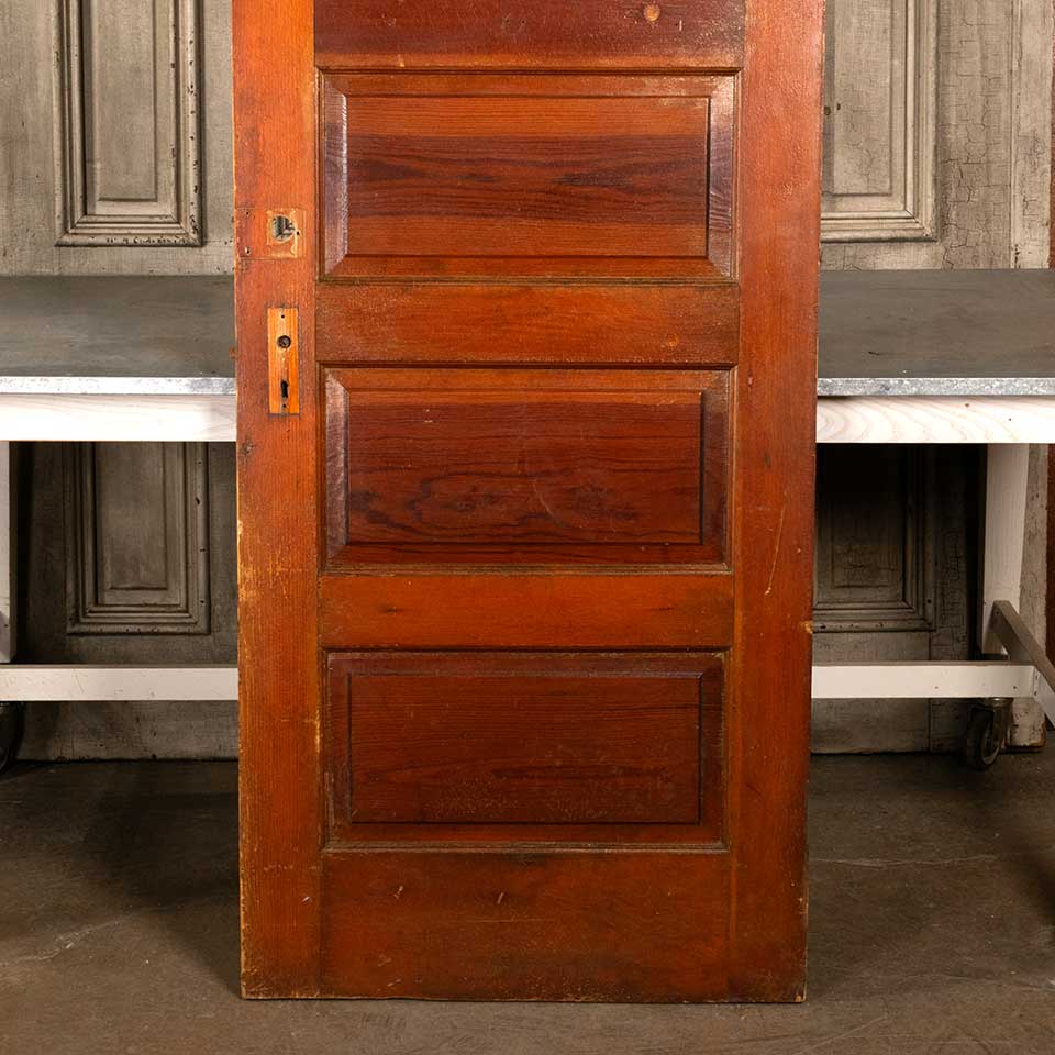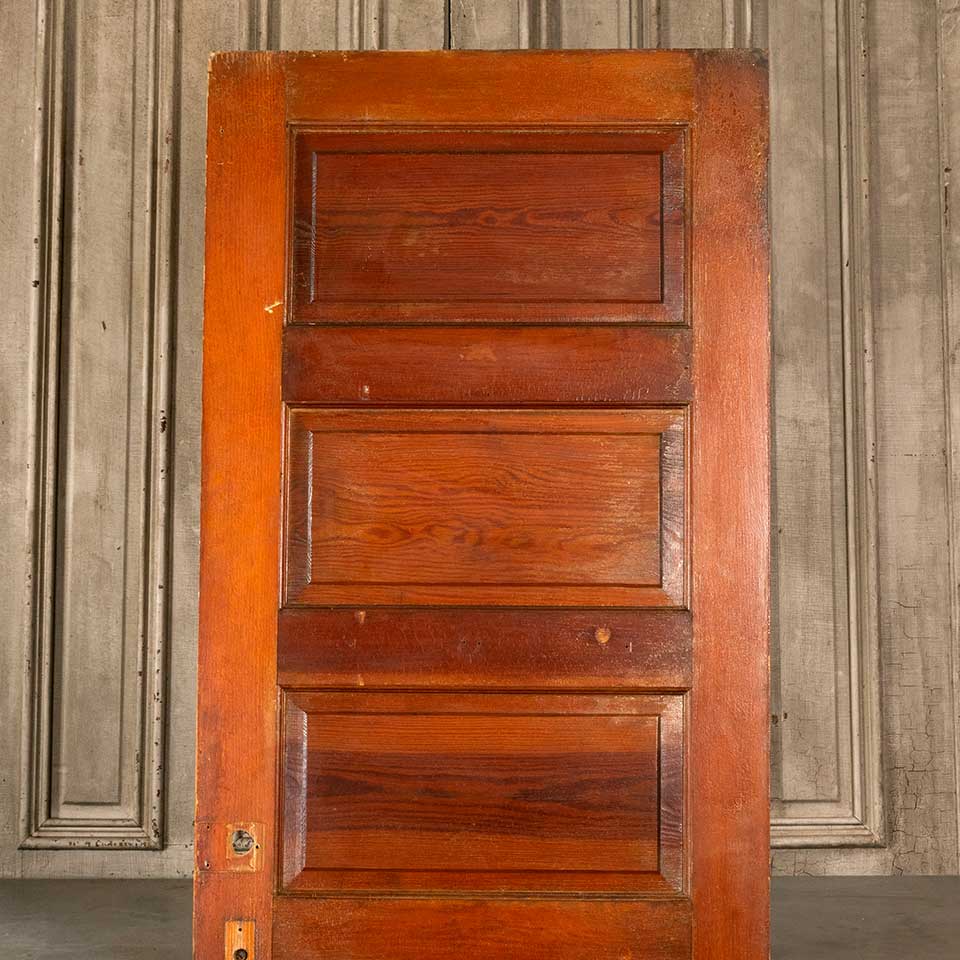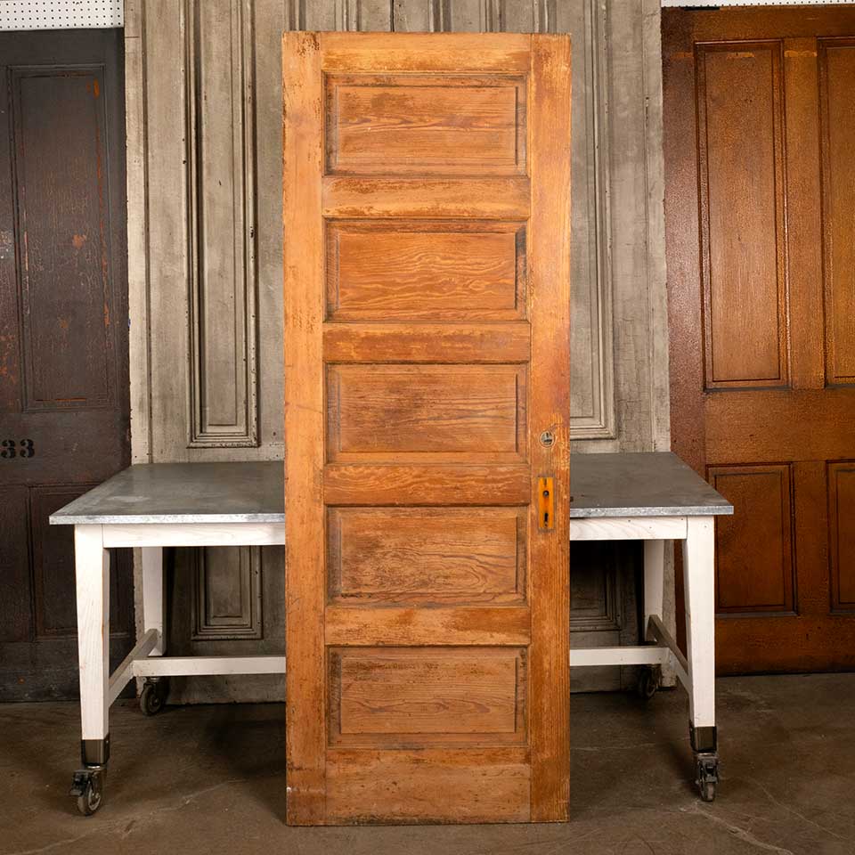 Architectural salvage antique five panel pine interior door with mortise lock measuring approx. 29 3/4" wide x 82 1/2" tall x 1 3/8" thick. See photos to evaluate condition.