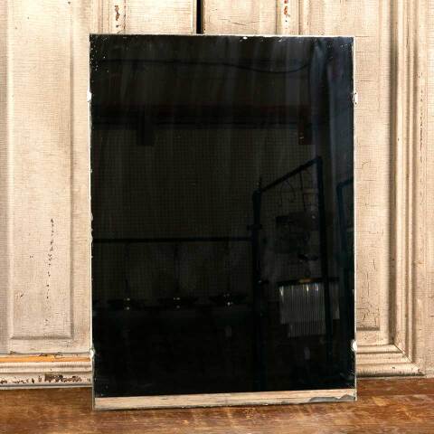 Architectural salvage vintage metal in the wall bathroom medicine cabinet with two glass shelves measuring approx. 16" wide x 22" tall x 4 3/4" front to back. The in wall box measures approx. 13 1/8" wide x 19 1/8" tall x 3 1/8" front to back. See photos to evaluate condition.