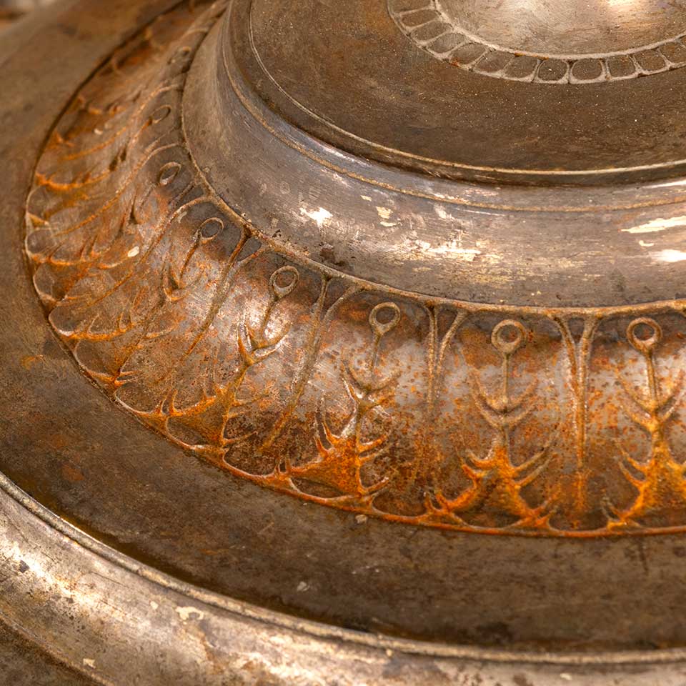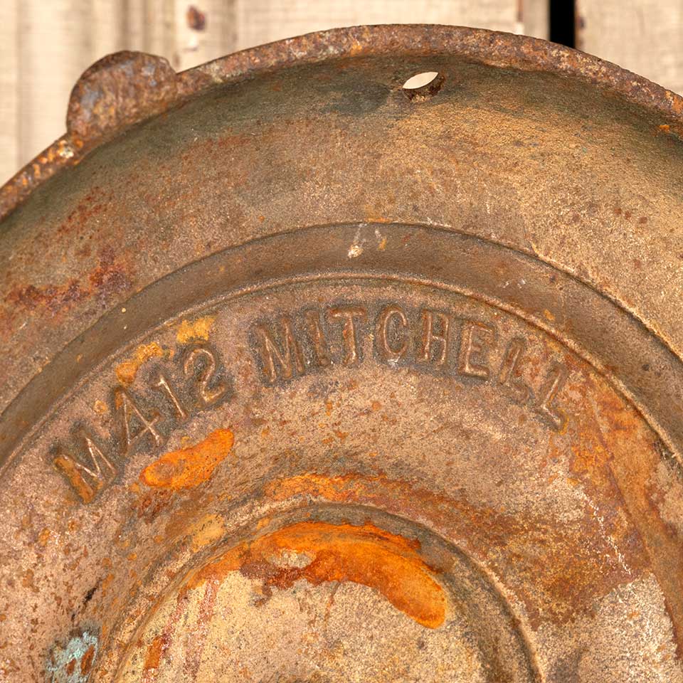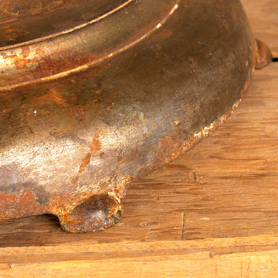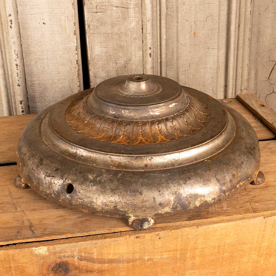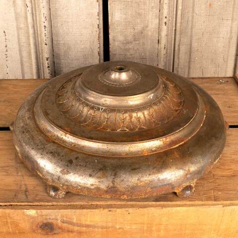Architectural salvage round antique cast brass floor lamp base measuring approx. 12 1/2" in diameter x 4" tall. Marked on the bottom M412 MITCHELL. See photos to evaluate condition.