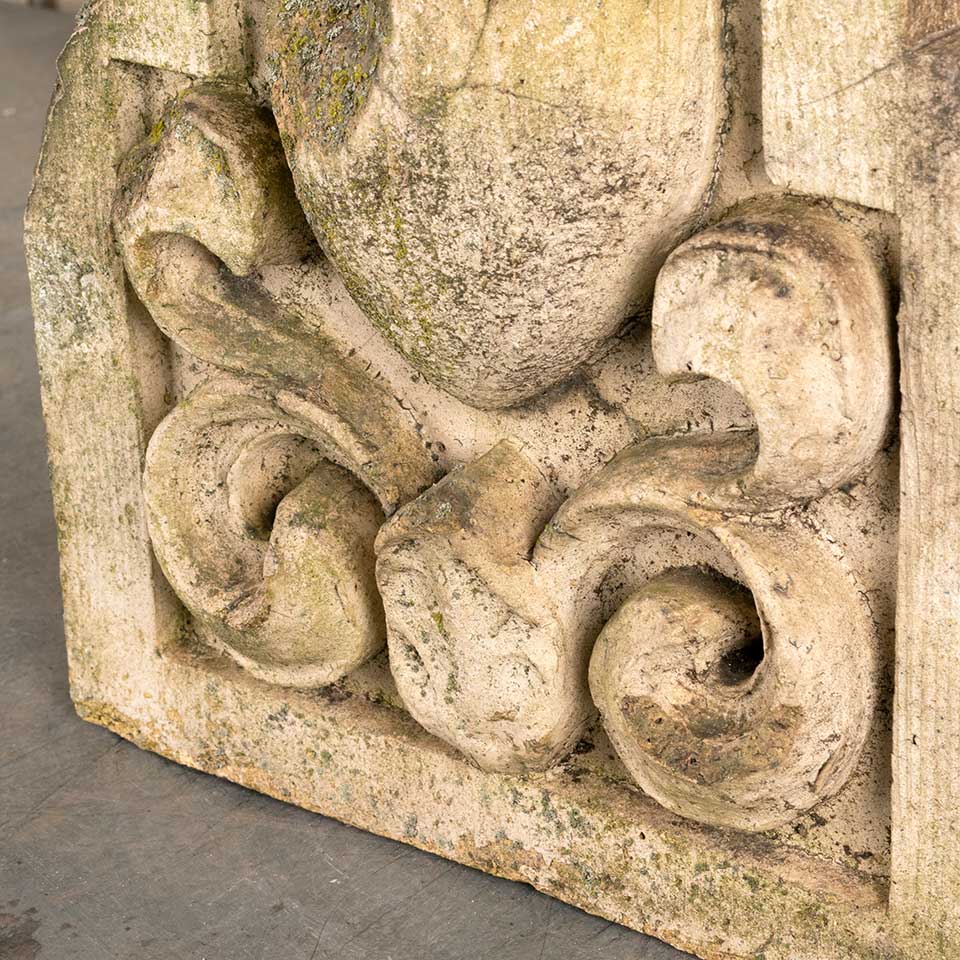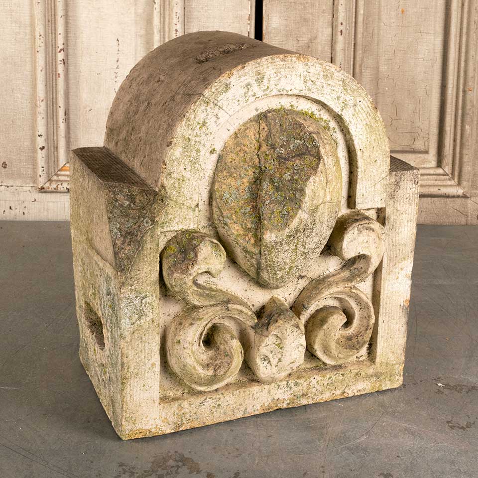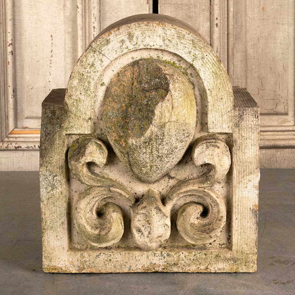 Architectural salvage antique terra cotta building ornament pediment / cartouche measuring approx. 13 1/16" wide x 15 1/8" tall x 8" front to back. There's some material loss which adds to the piece's character. See photos to evaluate condition.