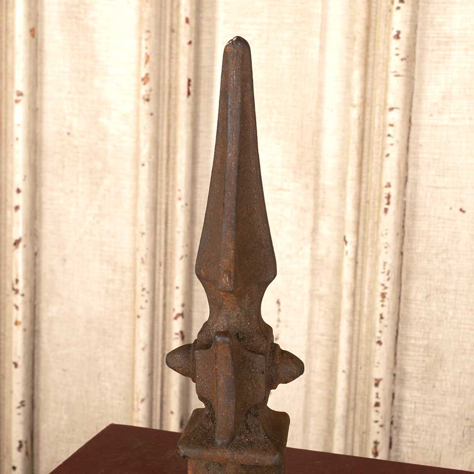 Architectural salvage antique cast iron fence finial ornament measuring approx. 2 3/4" x 2 1/2" x 8 1/2" tall. Color and condition may vary, see photos to evaluate. Priced at $45/each.