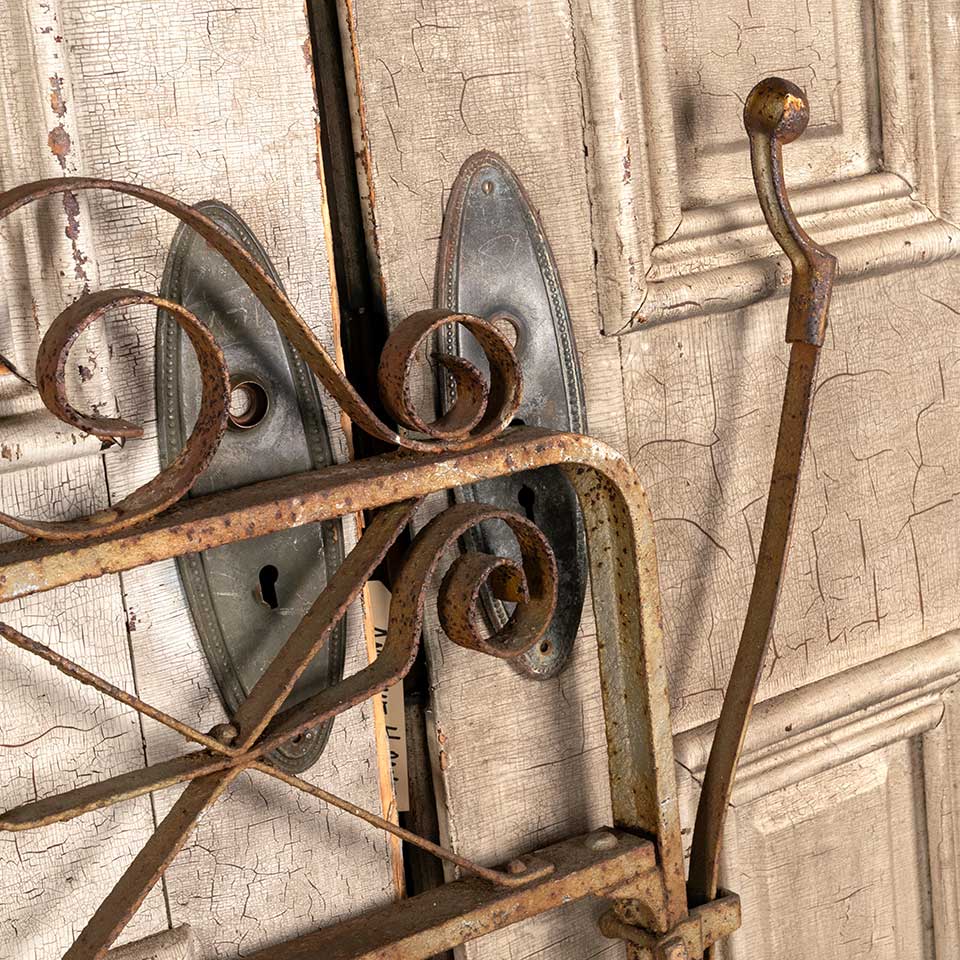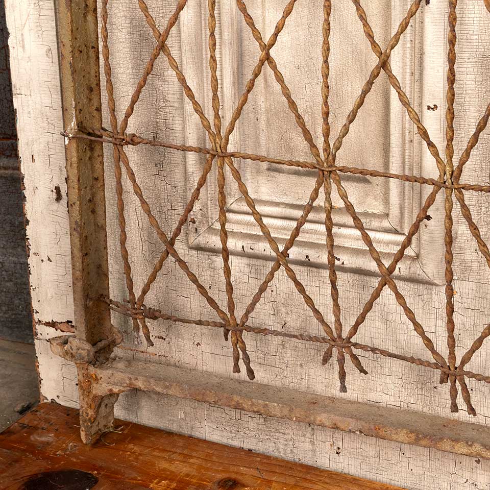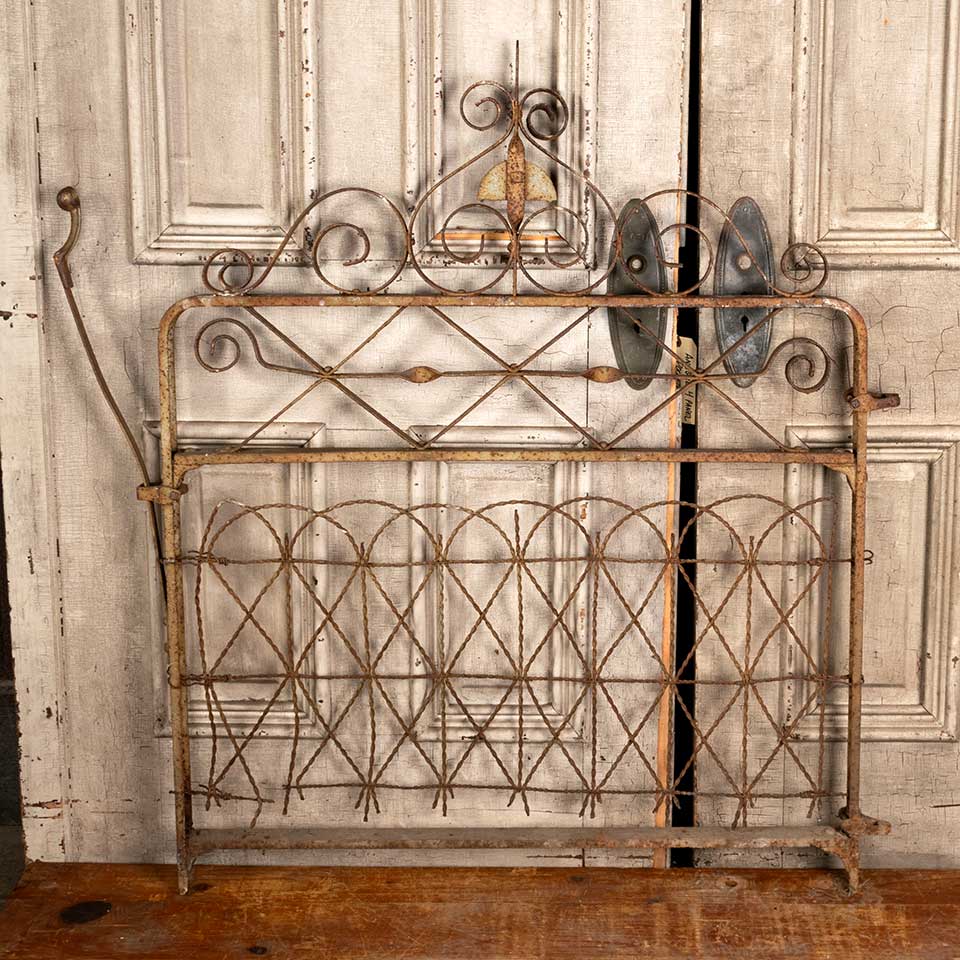 Architectural salvage antique wrought iron garden gate with metal wire bottom panel measuring approx. 36 1/2" wide x 45 1/8" tall x 1 5/8" front to back. See photos to evaluate condition.