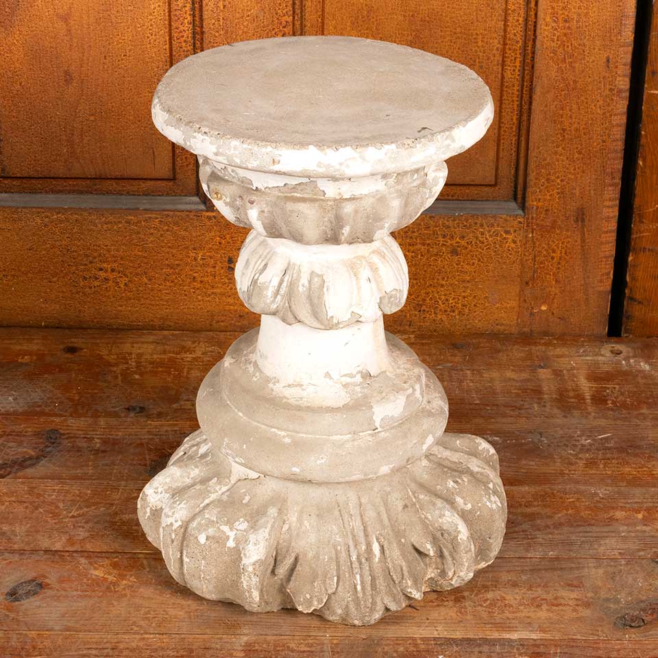 Architectural salvage vintage cast concrete garden pedestal base measuring approx. 20 1/2" tall with a 12 3/4" diameter top and a 15 1/2" diameter base. See photos to evaluate condition.