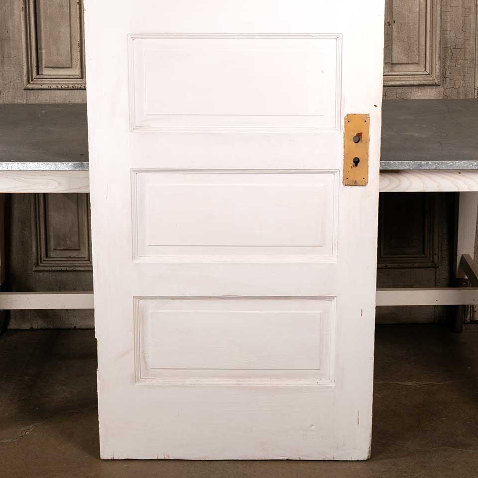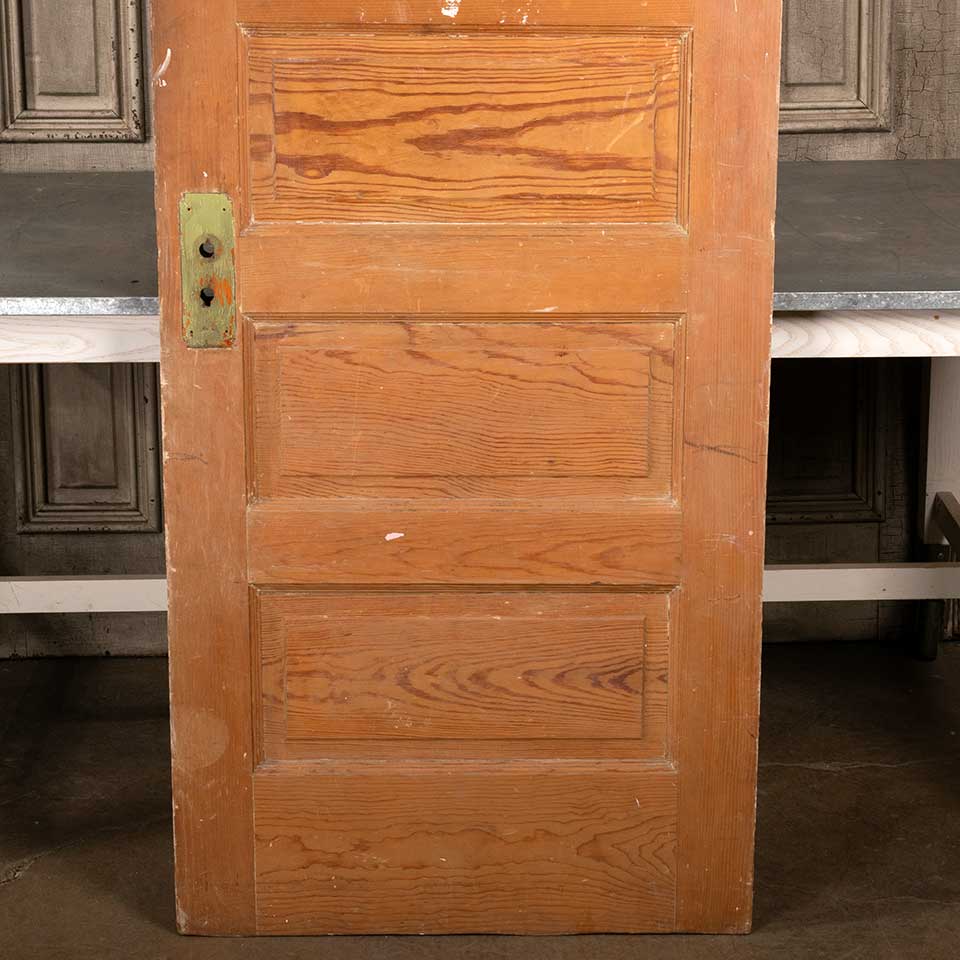Architectural salvage antique five horizontal panel pine wood interior door measuring approx. 29 3/4" wide x 76 7/8" tall x 1 3/8" thick. The paint has been stripped off one side. See photos to evaluate condition.