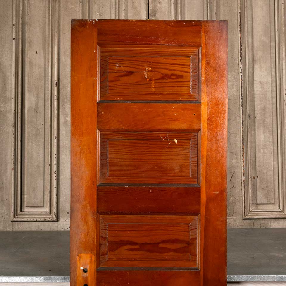 Architectural salvage antique five horizontal panel pine wood interior door measuring approx. 23 1/2" wide x 71 1/2" tall x 1 3/8" thick. See photos to evaluate condition.