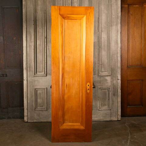 Architectural salvage antique one panel pine wood interior Miracle door with mortise lock measuring approx. 24" wide x 79 1/16" tall x 1 3/8" thick. See photos to evaluate condition.